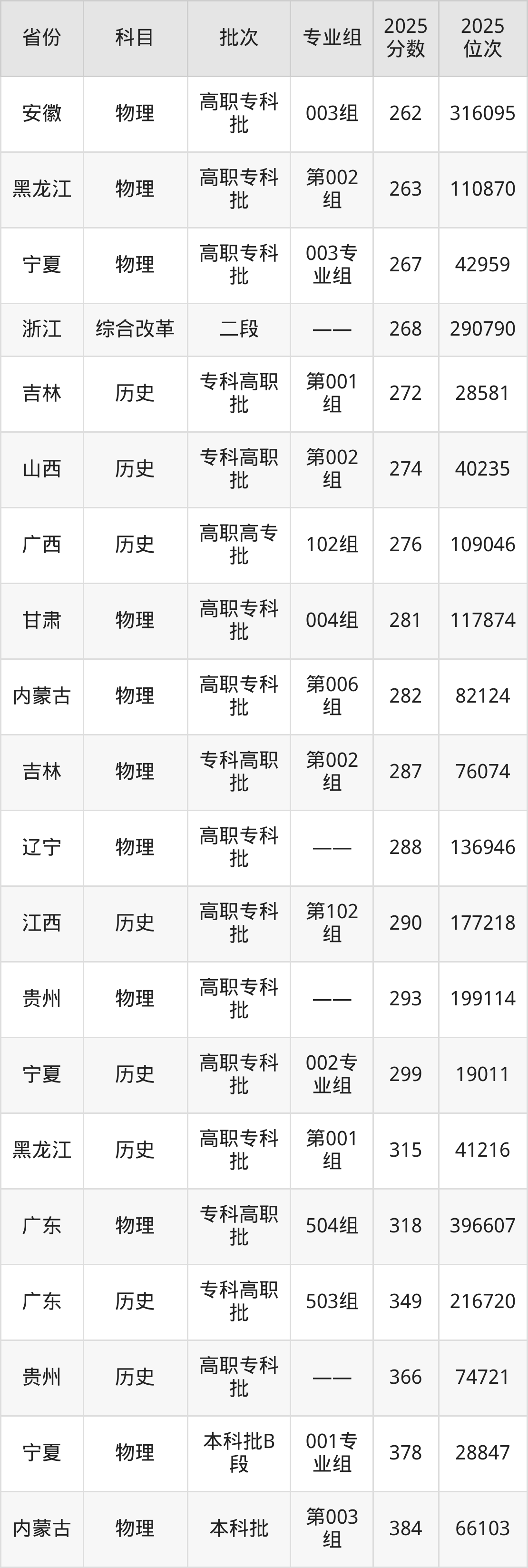 2025年泰山科技学院在各省普通批录取分数线一览表: