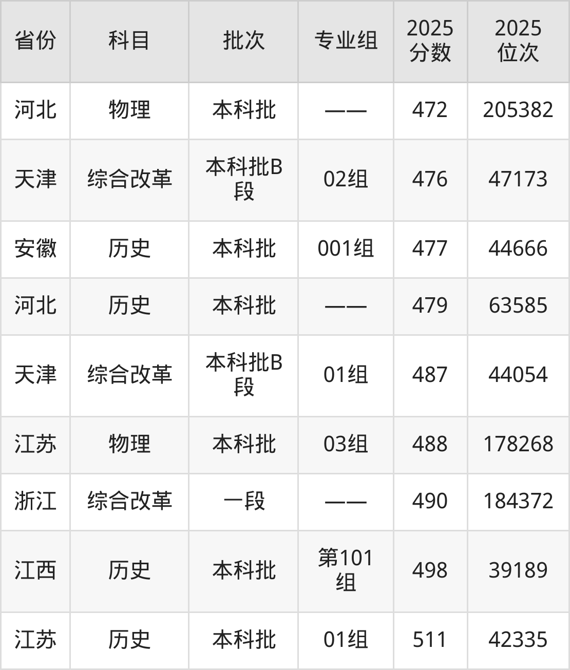 最高录取分数线是490分,对应位次是184372名,招生地区为浙江。