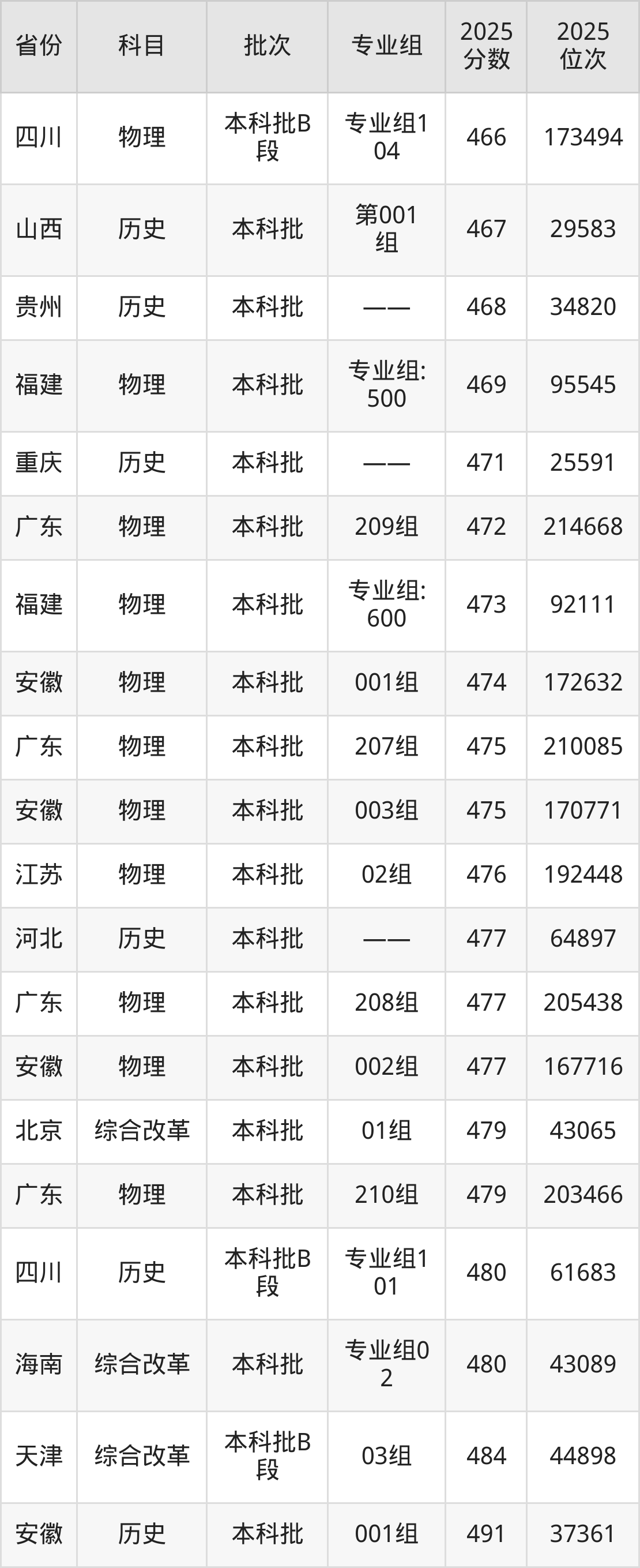最高录取分数线是479分,对应位次是203466名,招生地区为广东。
