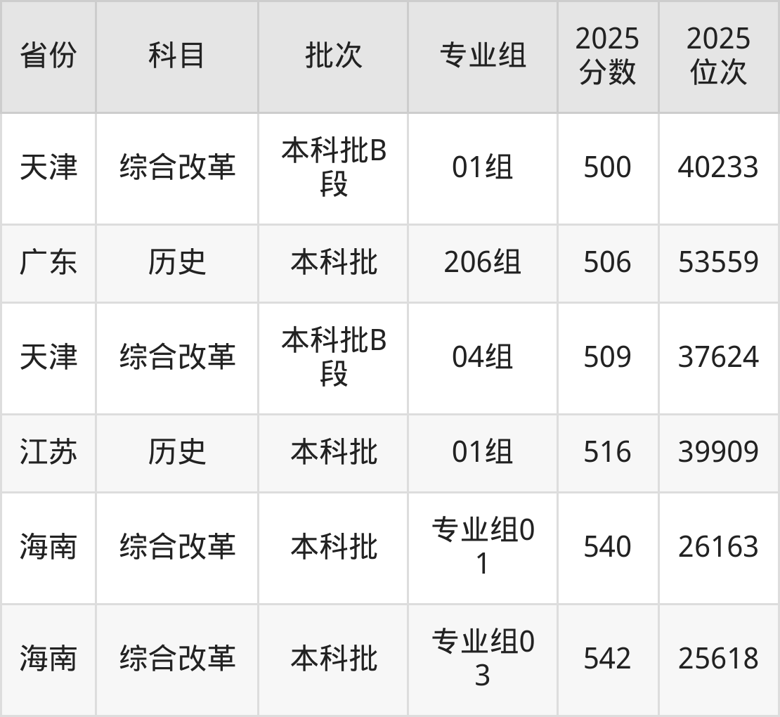 最高录取分数线是542分,对应位次是25618名,招生地区为海南。