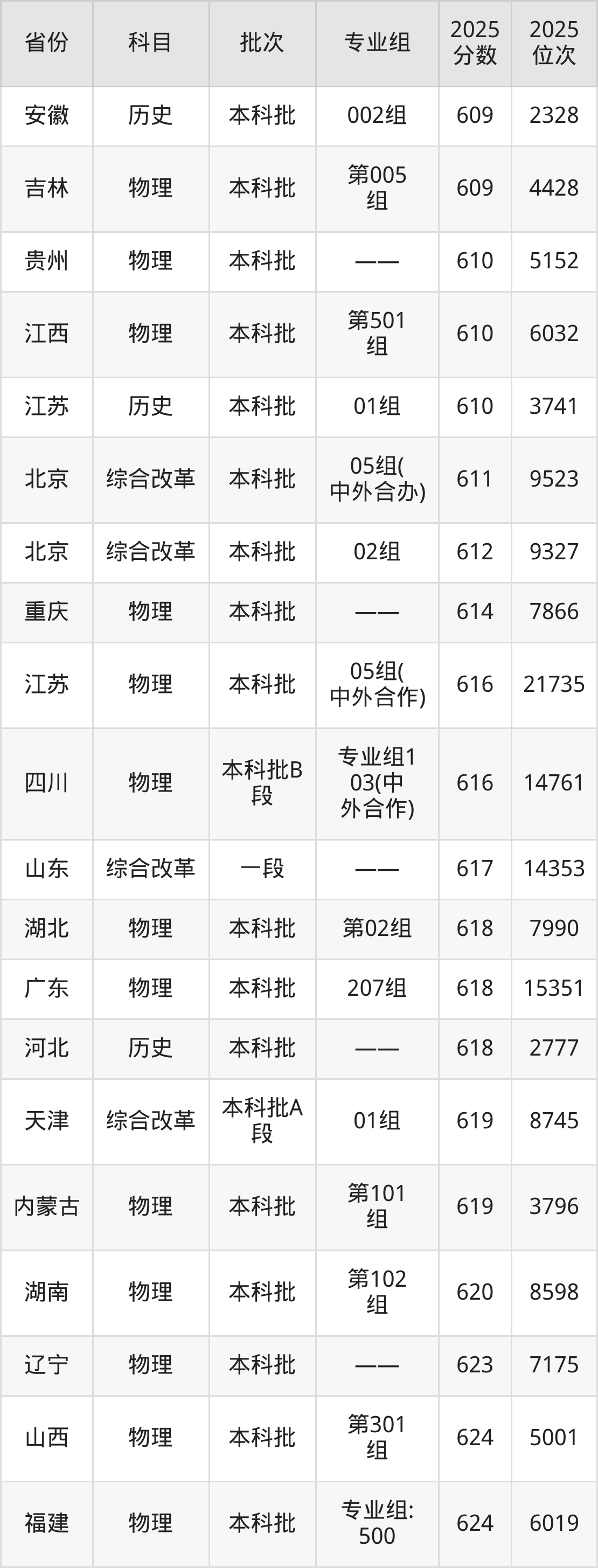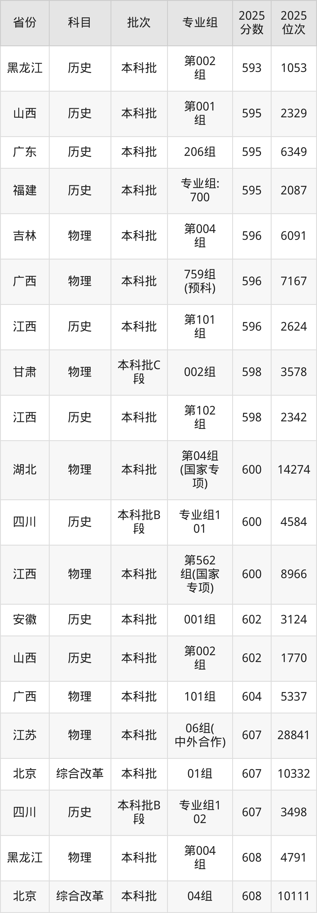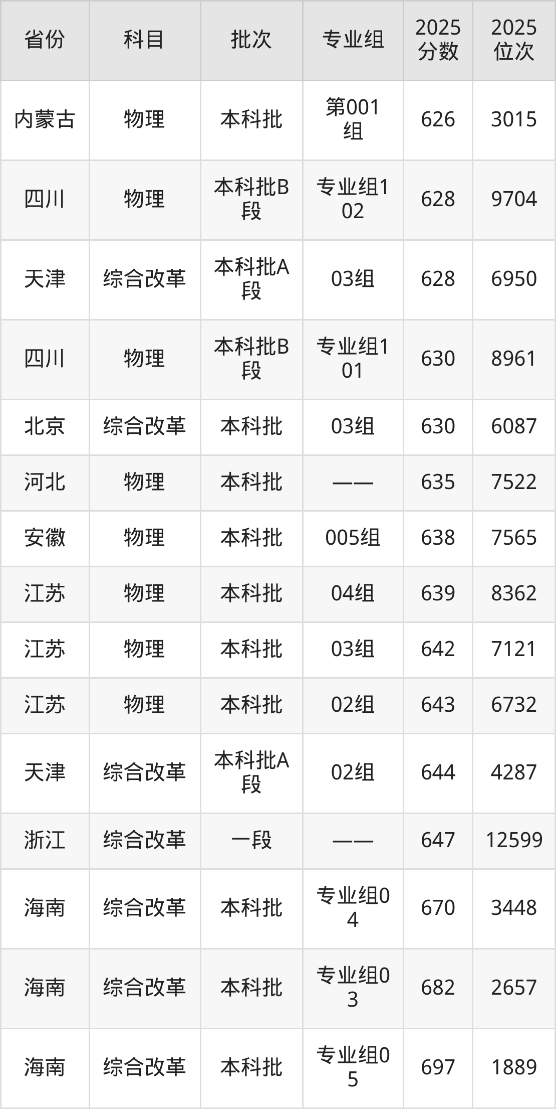 2025年南京理工大学在各省普通批录取分数线一览表:
