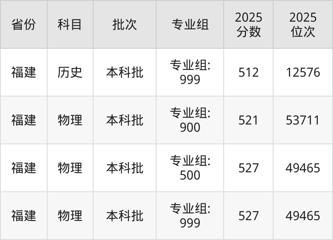 最低录取分数线是512分,对应位次是12576名,招生地区为福建。