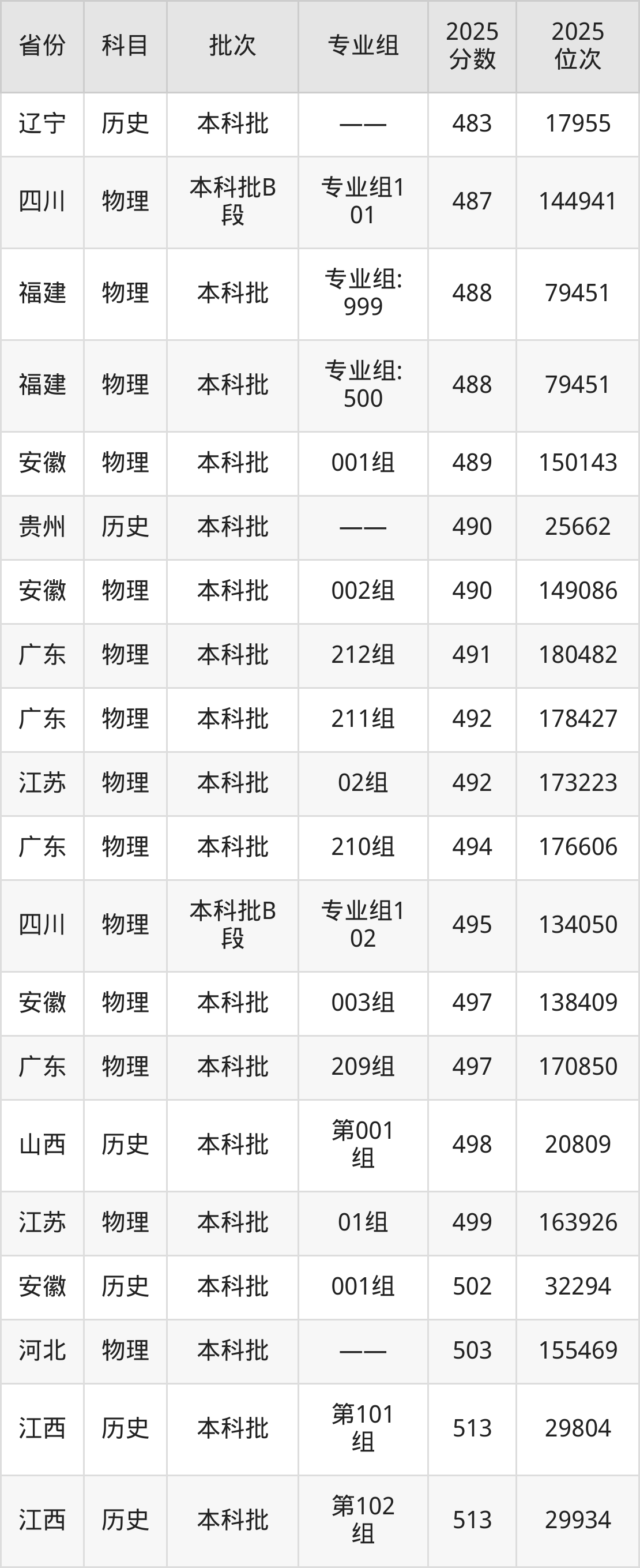 最高录取分数线是503分,对应位次是155469名,招生地区为河北。
