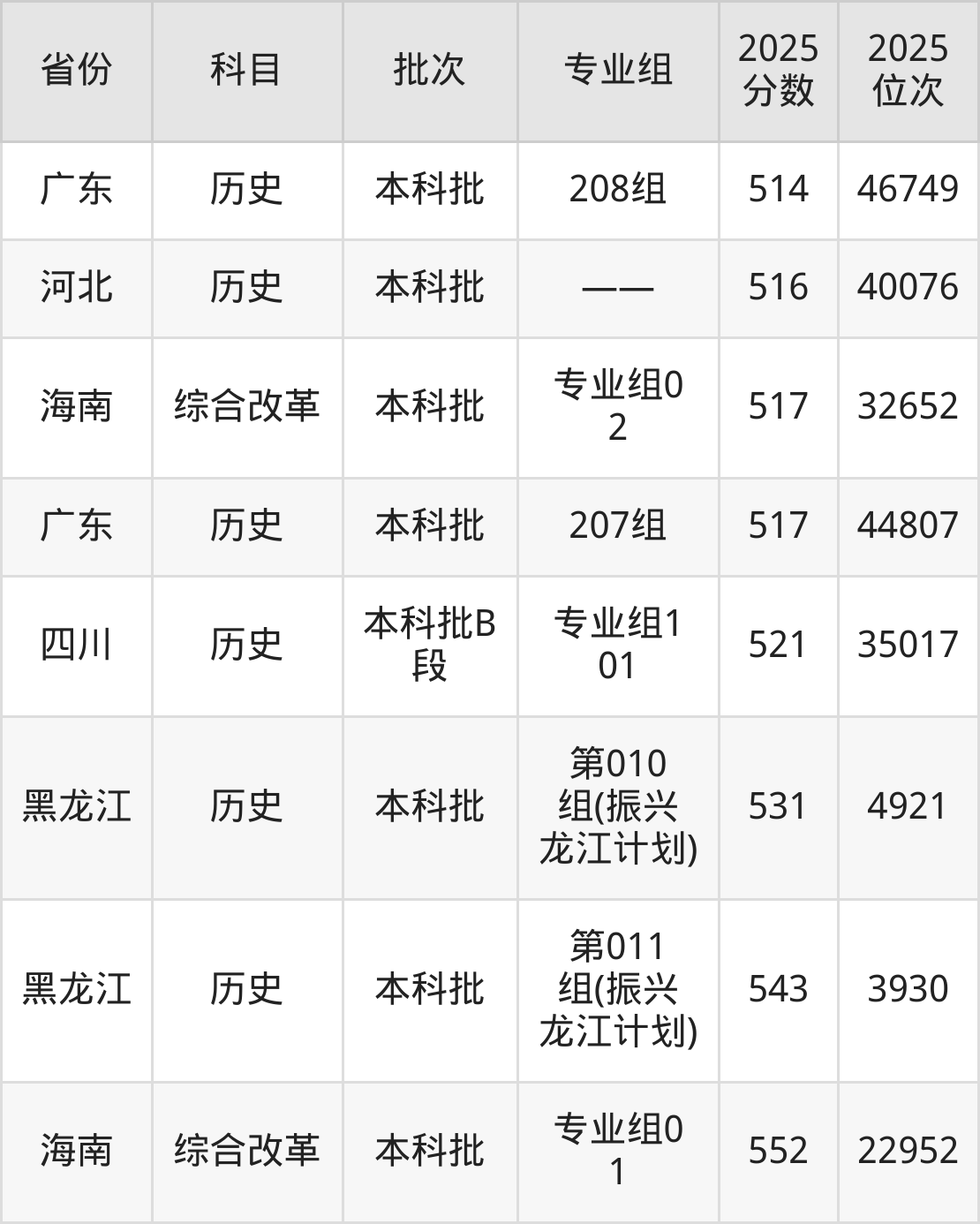 最高录取分数线是552分,对应位次是22952名,招生地区为海南。