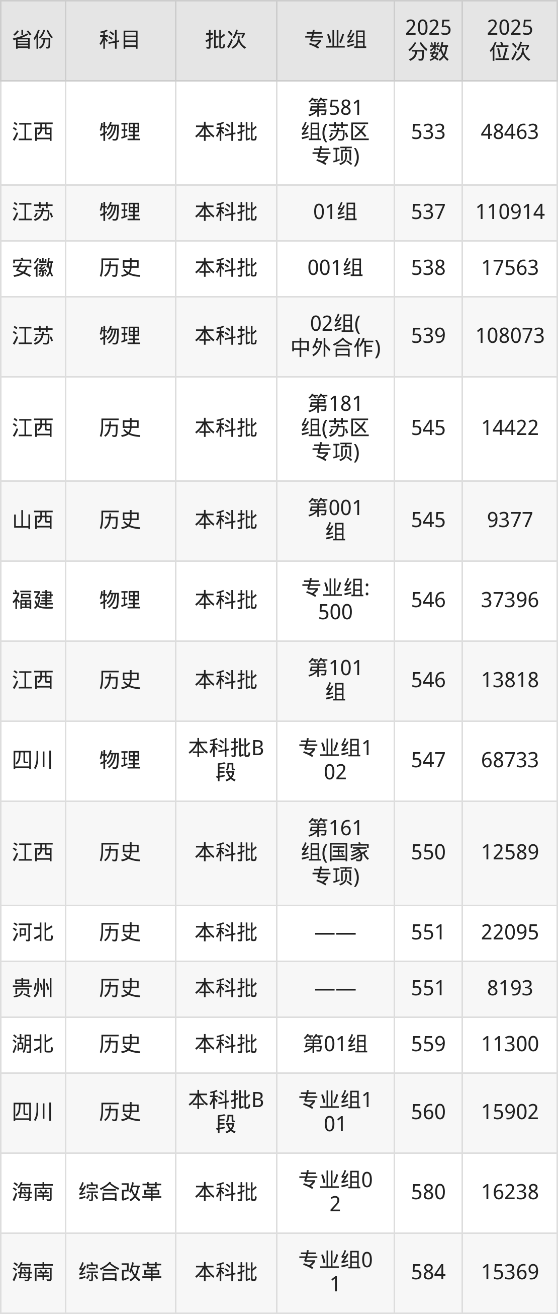 最高录取分数线是560分,对应位次是15902名,招生地区为四川。