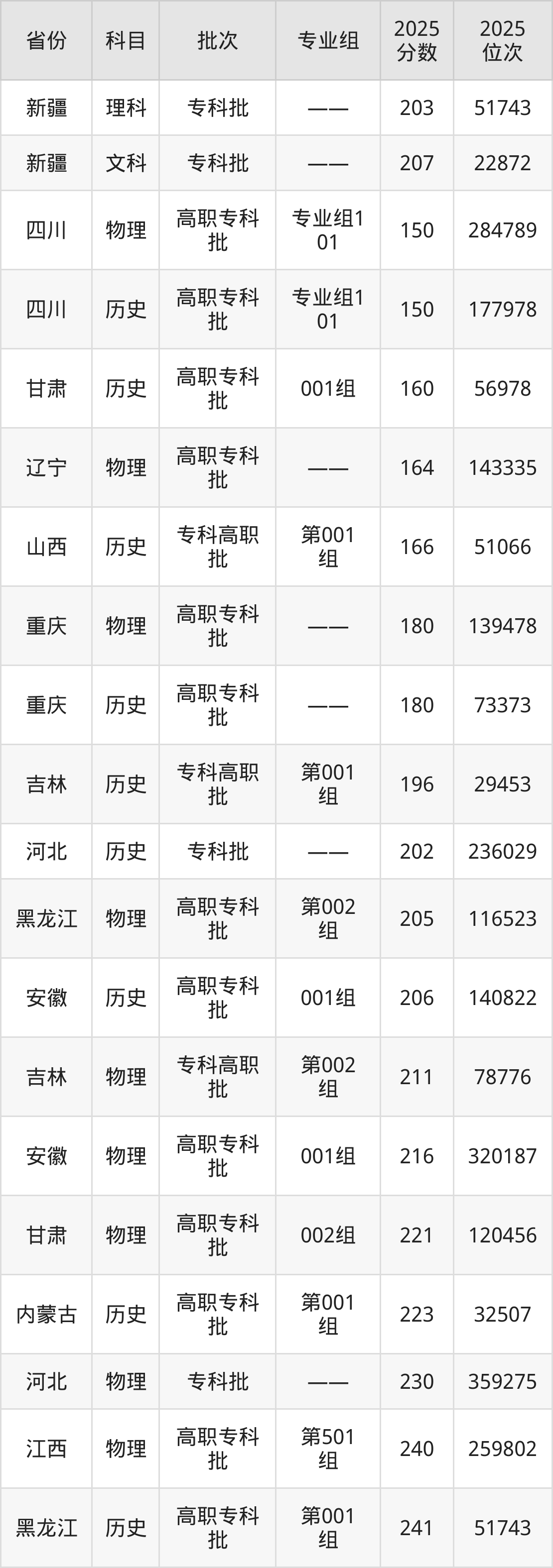 最低录取分数线是150分,对应位次是177978名,招生地区为四川;