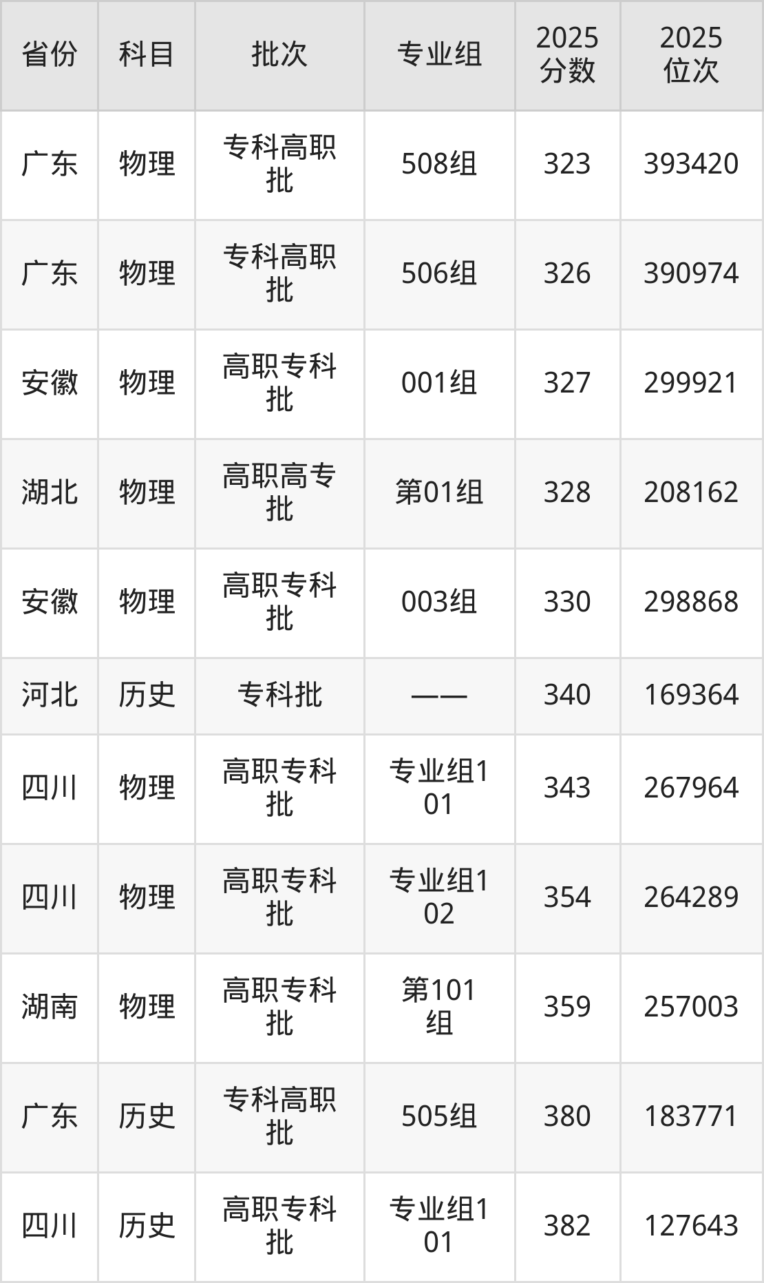 最高录取分数线是382分,对应位次是127643名,招生地区为四川。