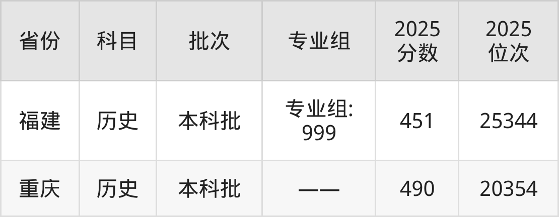 最低录取分数线是451分,对应位次是25344名,招生地区为福建;