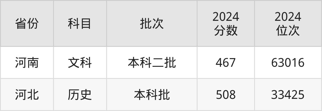 最低录取分数线是467分,对应位次是63016名,招生地区为河南;