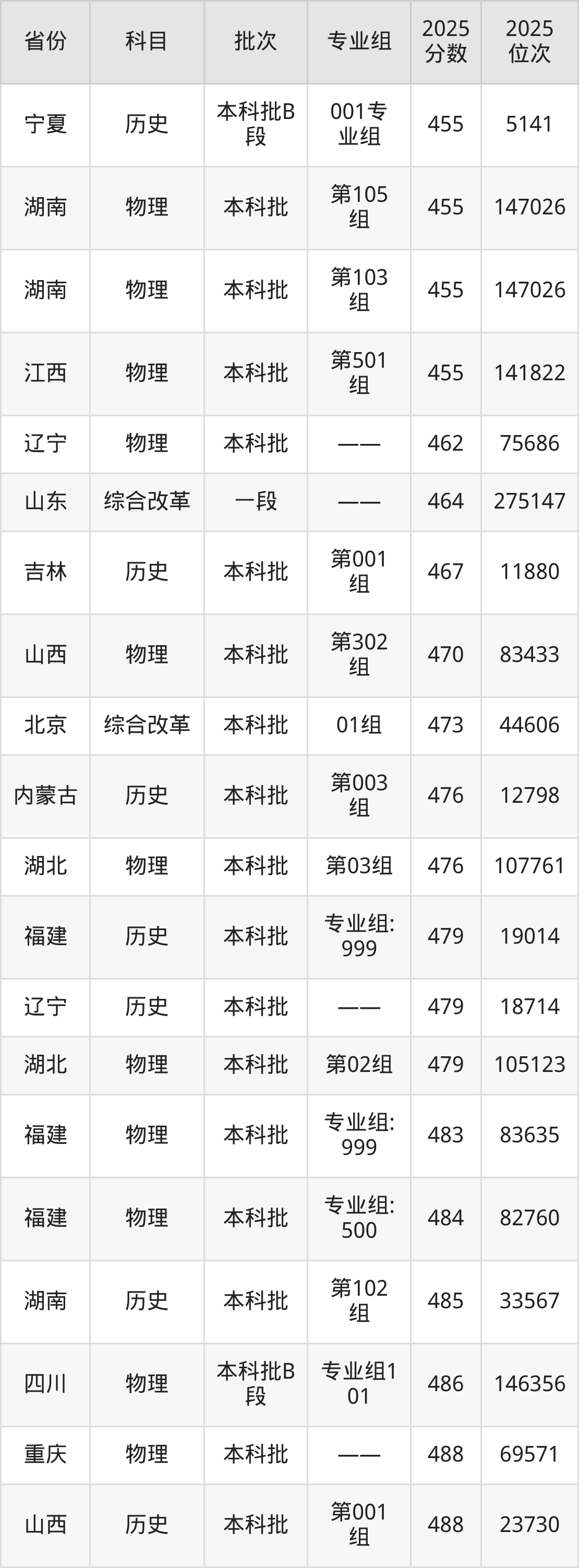 最低录取分数线是425分,对应位次是44325名,招生地区为上海;