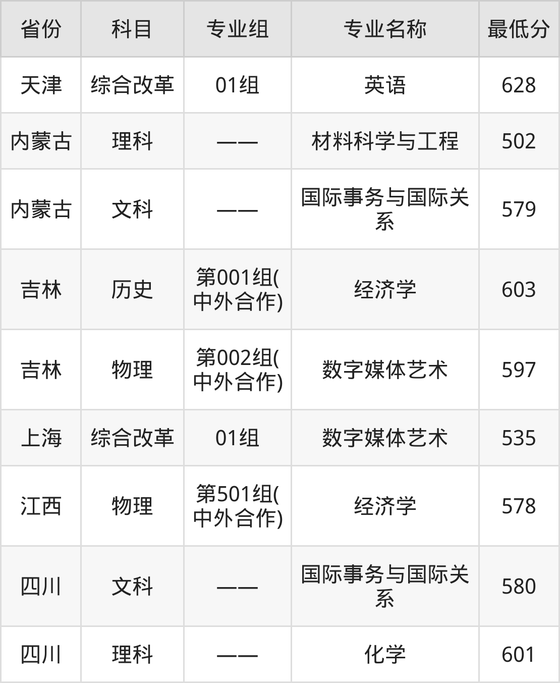 昆山杜克大学本科提前批各省具体录取分数线一览表: