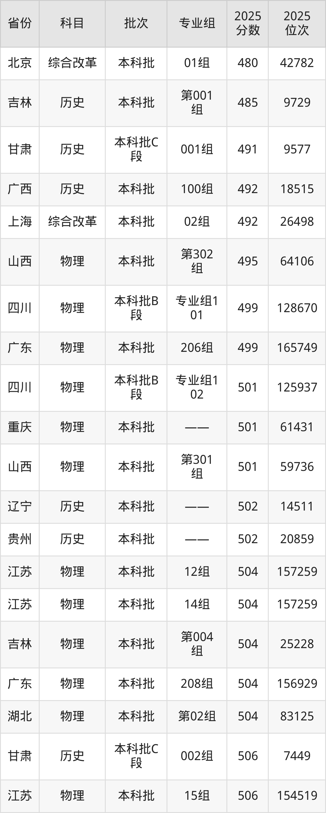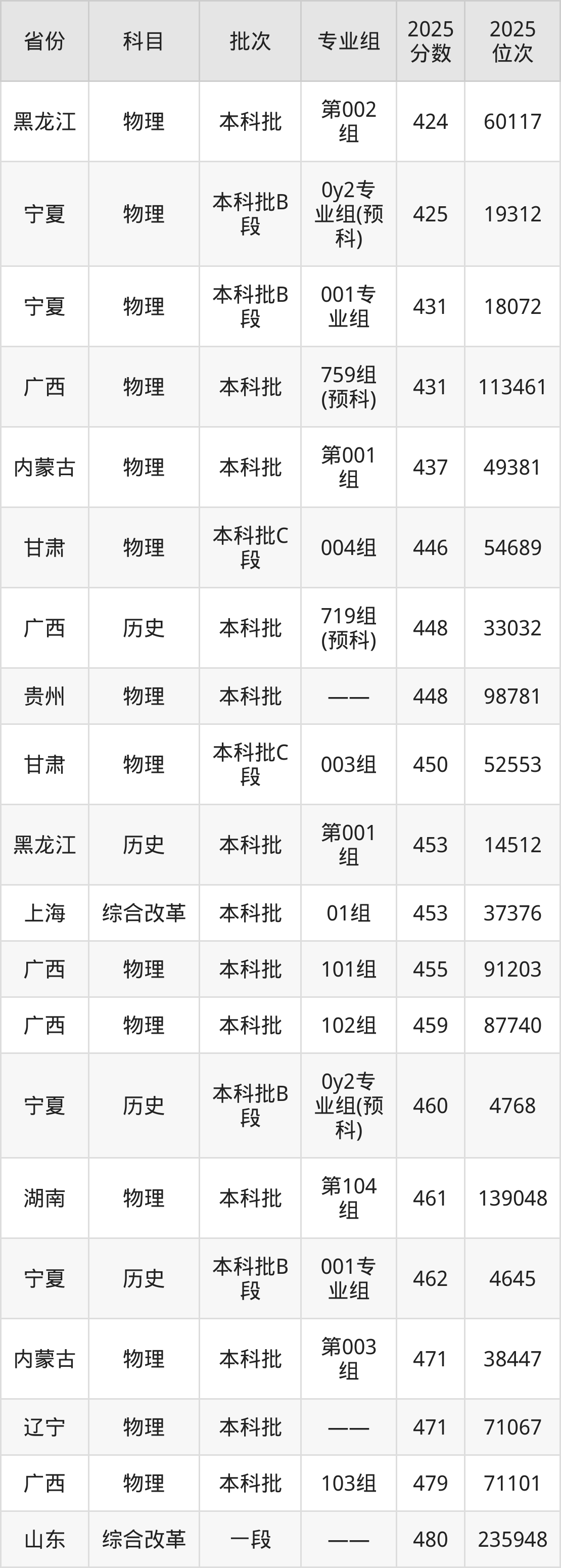 最低录取分数线是424分,对应位次是60117名,招生地区为黑龙江;