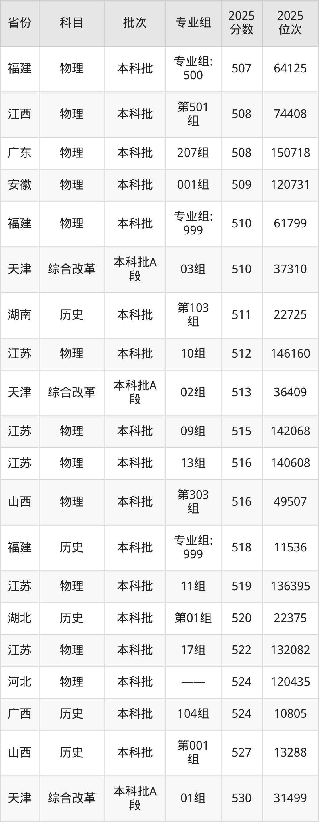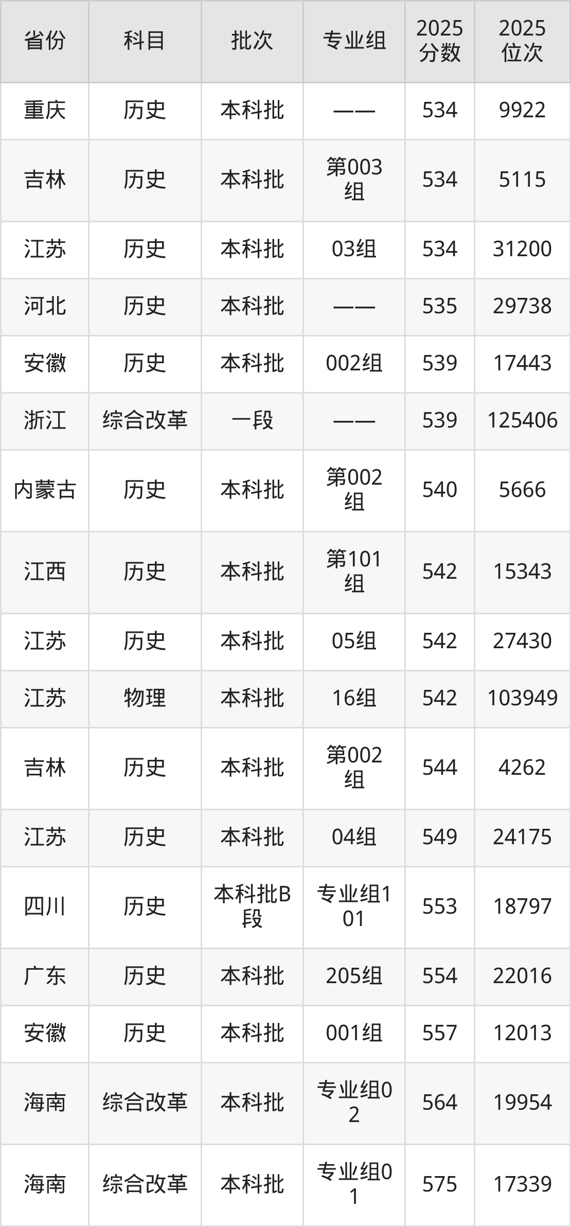 最高录取分数线是542分,对应位次是103949名,招生地区为江苏。