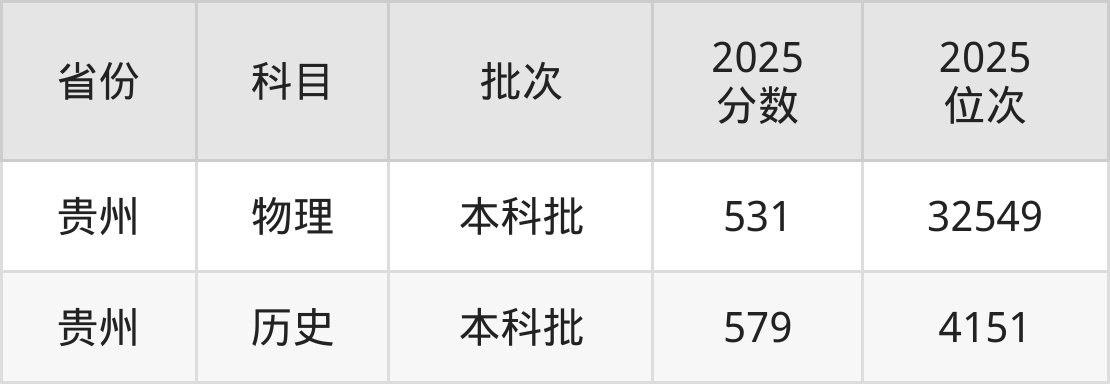 最低录取分数线是579分,对应位次是4151名,招生地区为贵州。