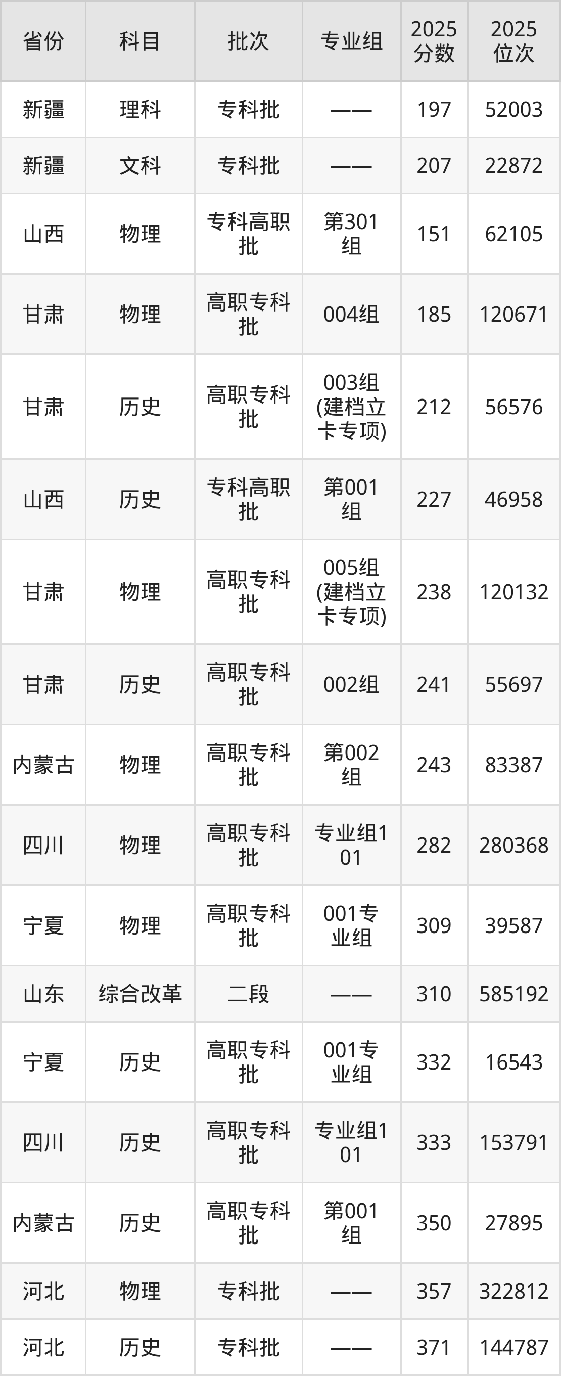 2025年白银矿冶职业技术学院在各省历史类和文科的录取分数线位于207分-371分之间。