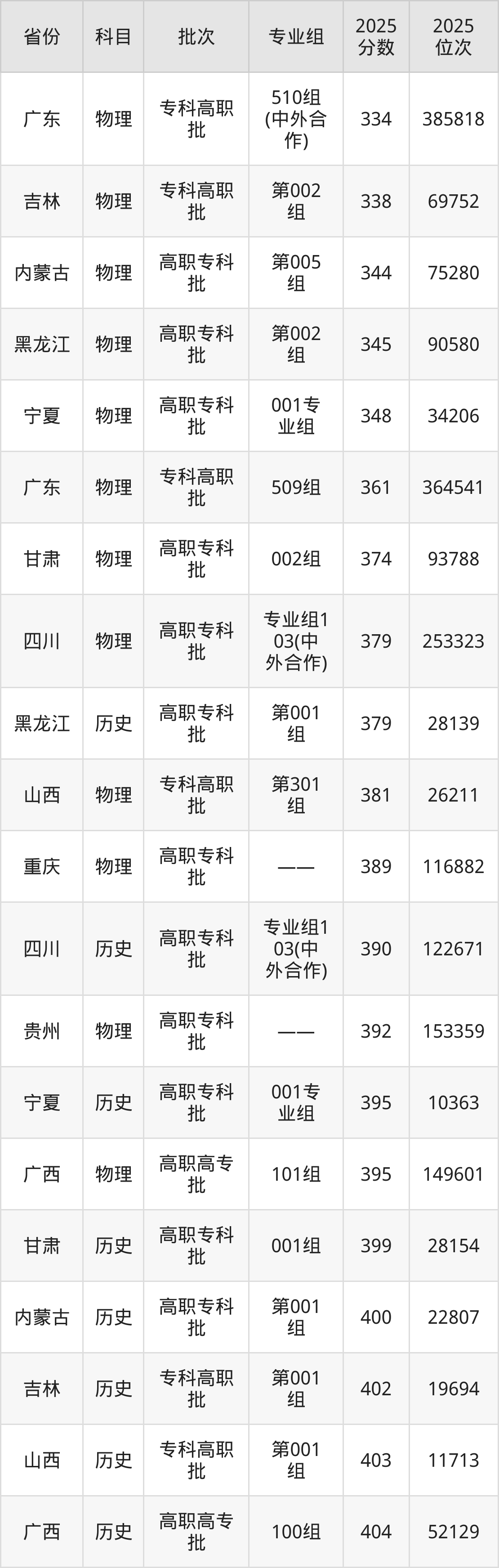 最低录取分数线是334分,对应位次是385818名,招生地区为广东;