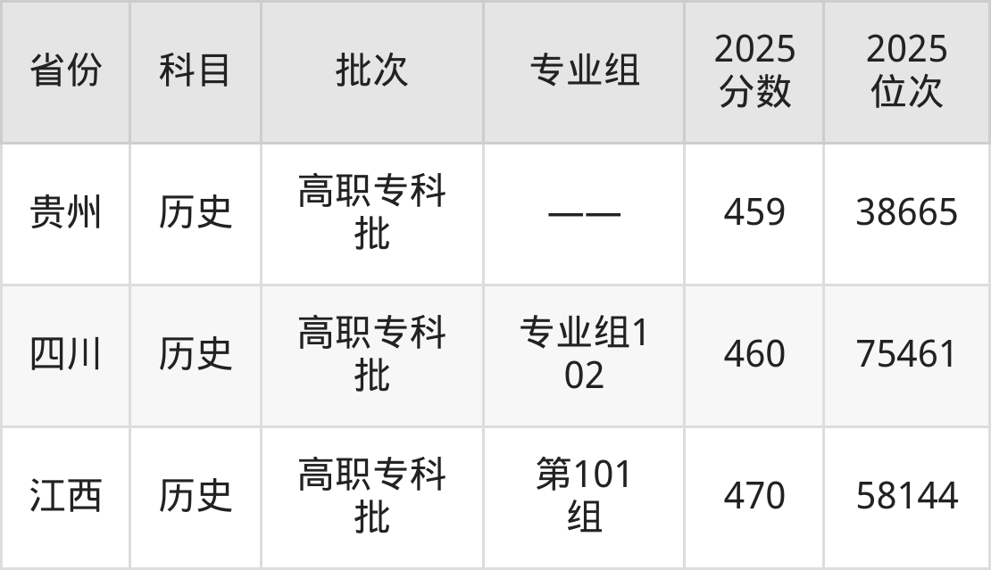 2025年重庆工商职业学院在各省历史类的录取分数线位于379分-470分之间。