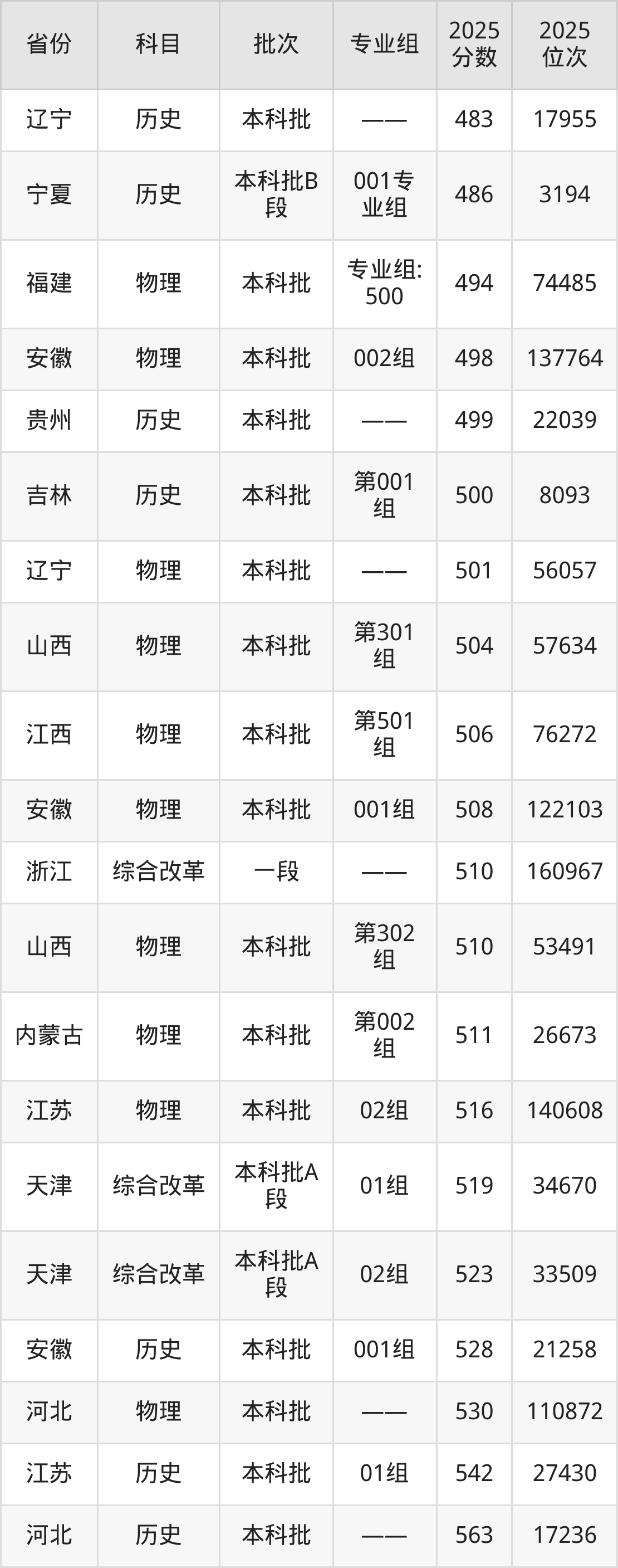 最高录取分数线是563分,对应位次是17236名,招生地区为河北。