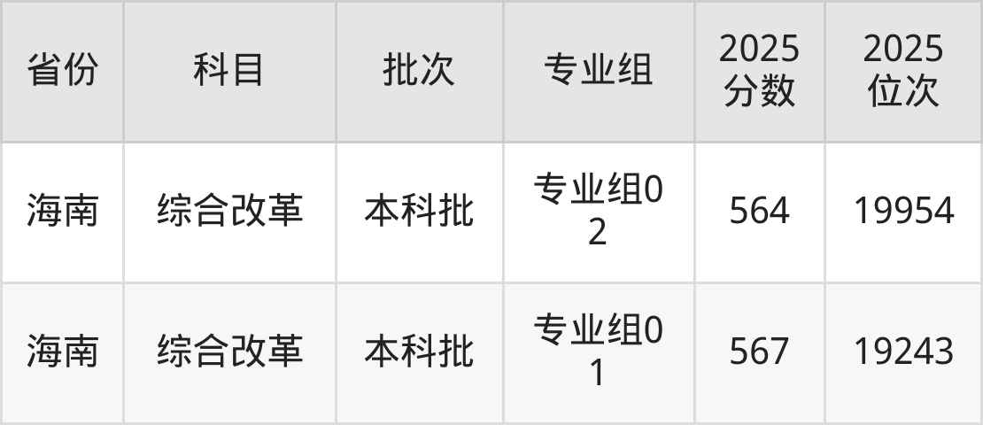 最高录取分数线是567分,对应位次是19243名,招生地区为海南。