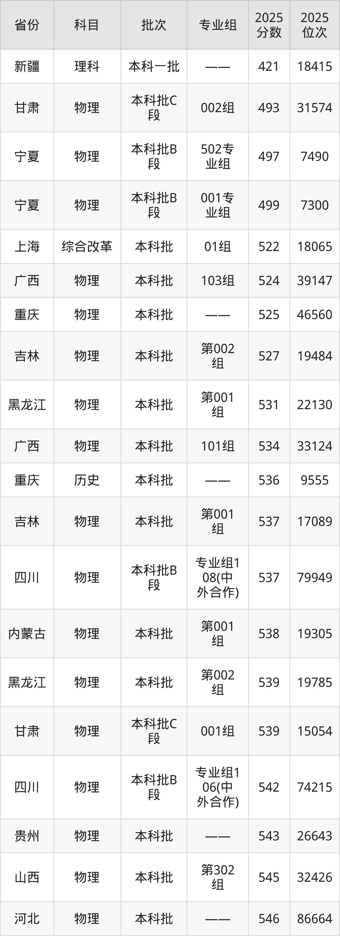 最低录取分数线是421分,对应位次是18415名,招生地区为新疆;