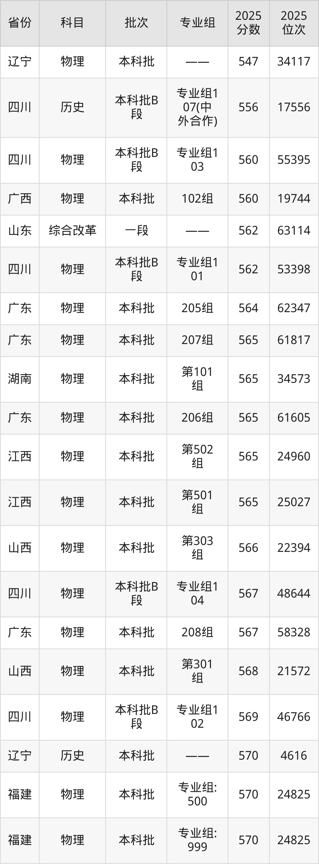 2025年四川农业大学在各省普通批录取分数线一览表: