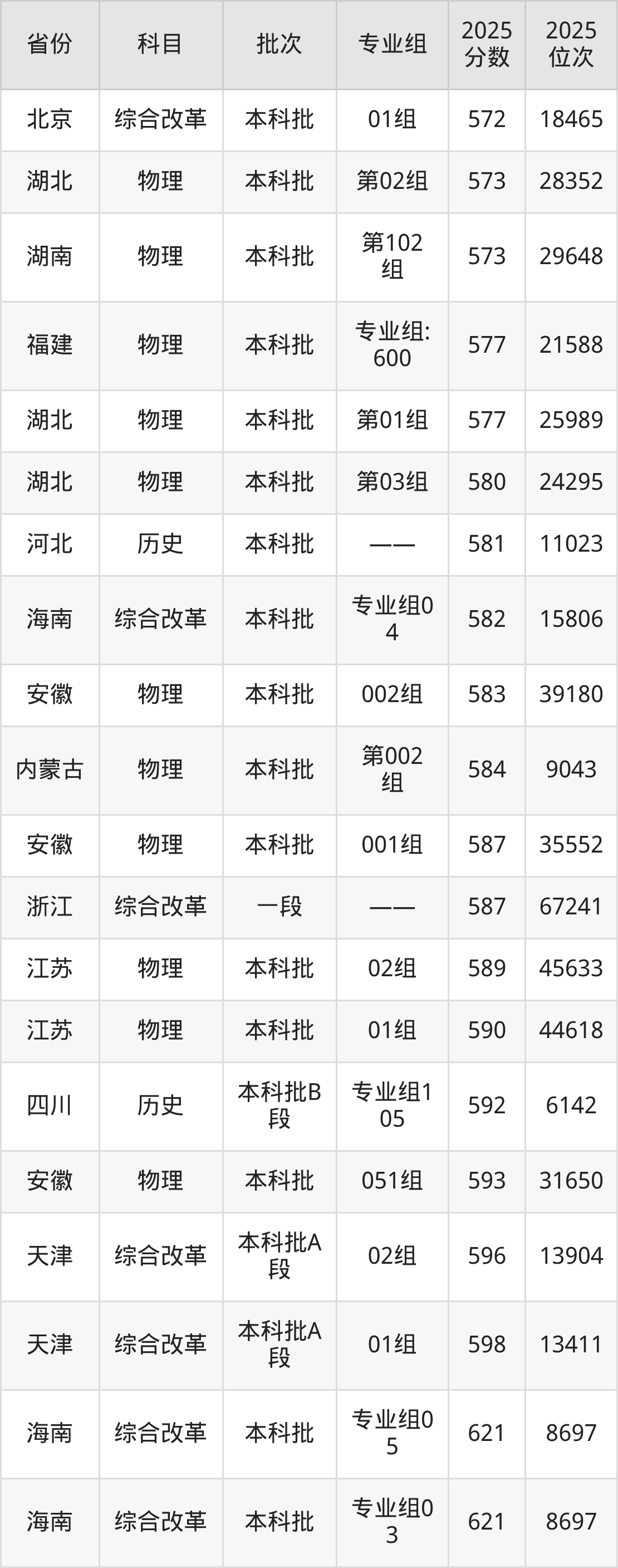 最高录取分数线是593分,对应位次是31650名,招生地区为安徽。