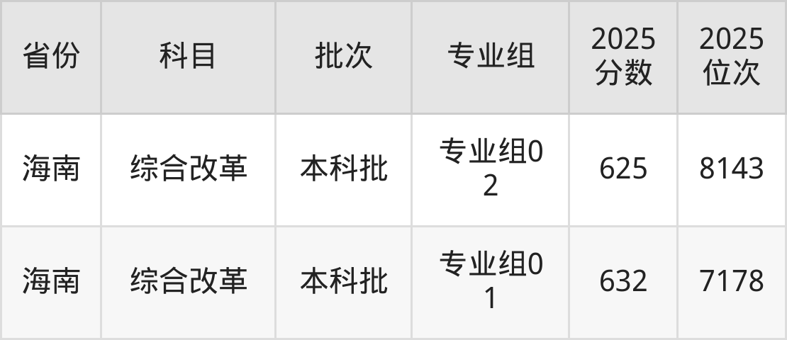 最高录取分数线是632分,对应位次是7178名,招生地区为海南。