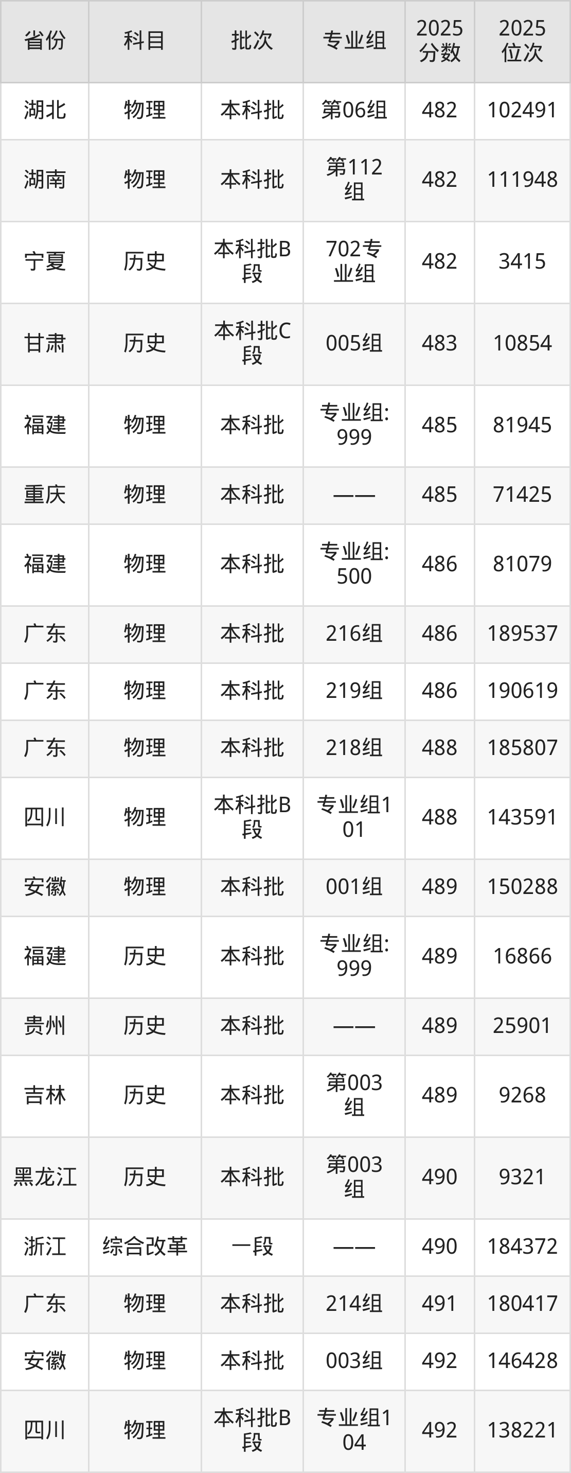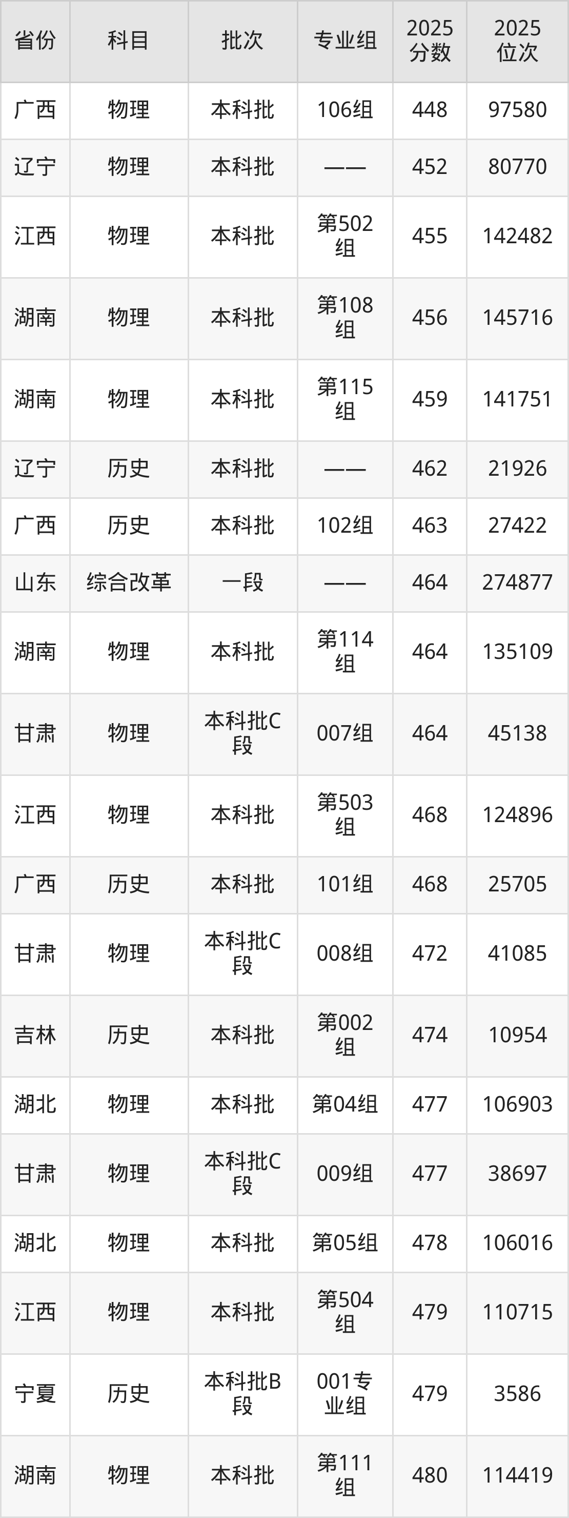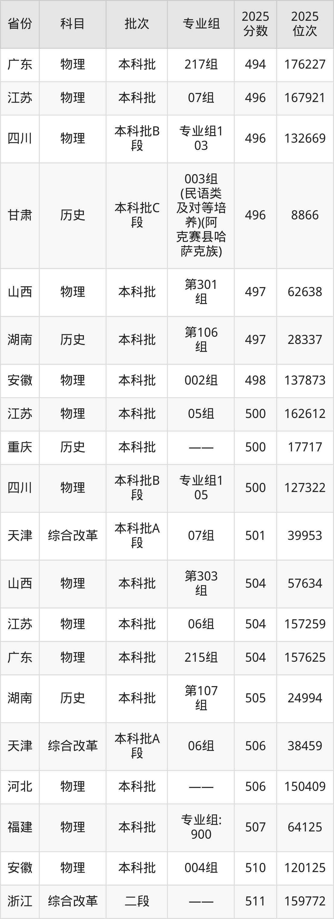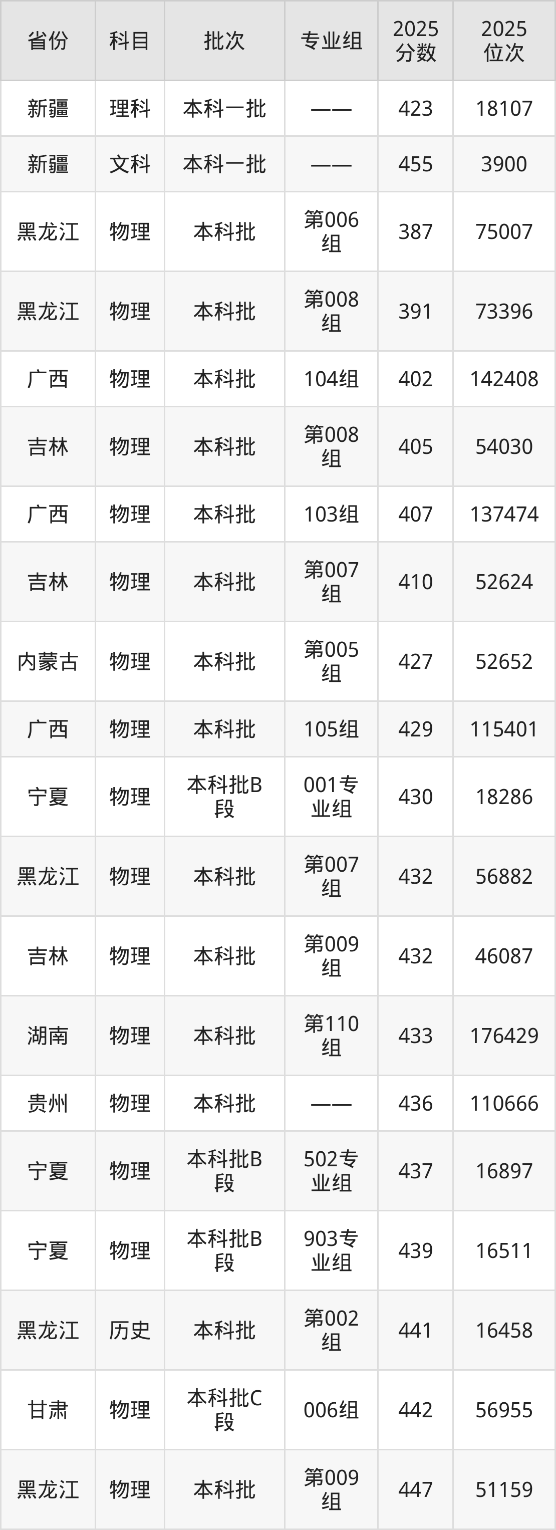 最低录取分数线是441分,对应位次是16458名,招生地区为黑龙江;