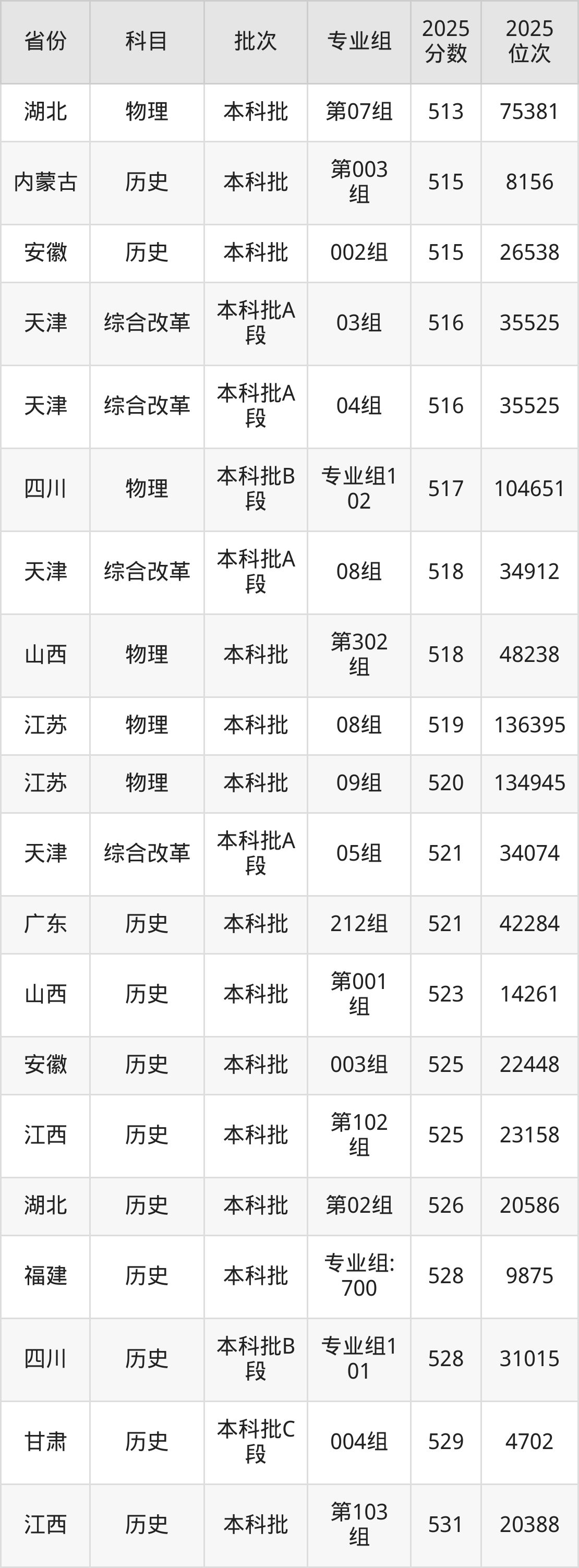 最高录取分数线是521分,对应位次是34074名,招生地区为天津。