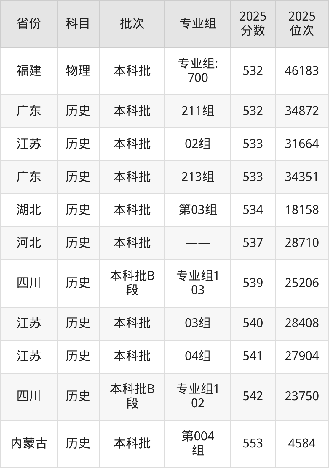 最高录取分数线是532分,对应位次是46183名,招生地区为福建。