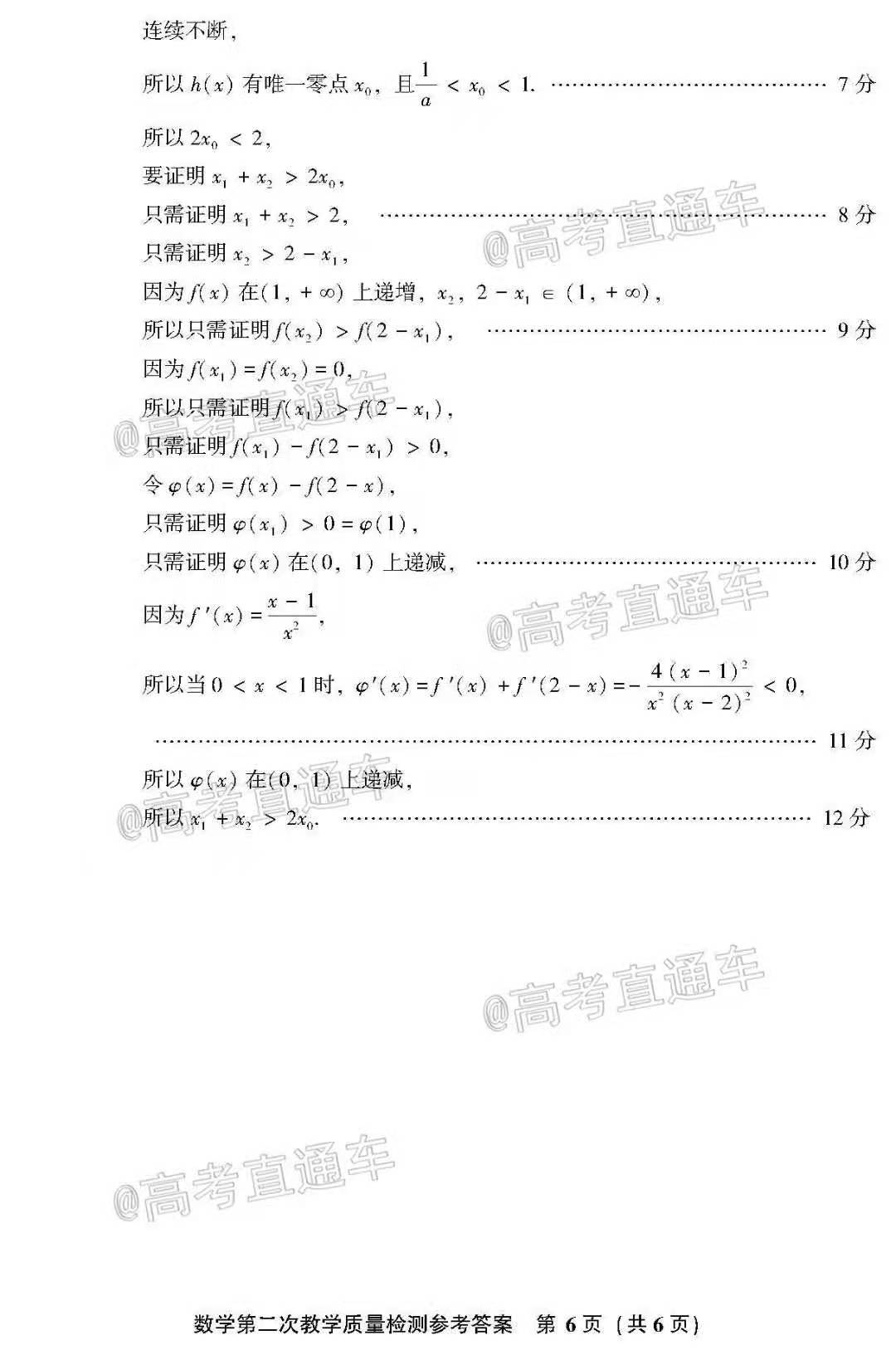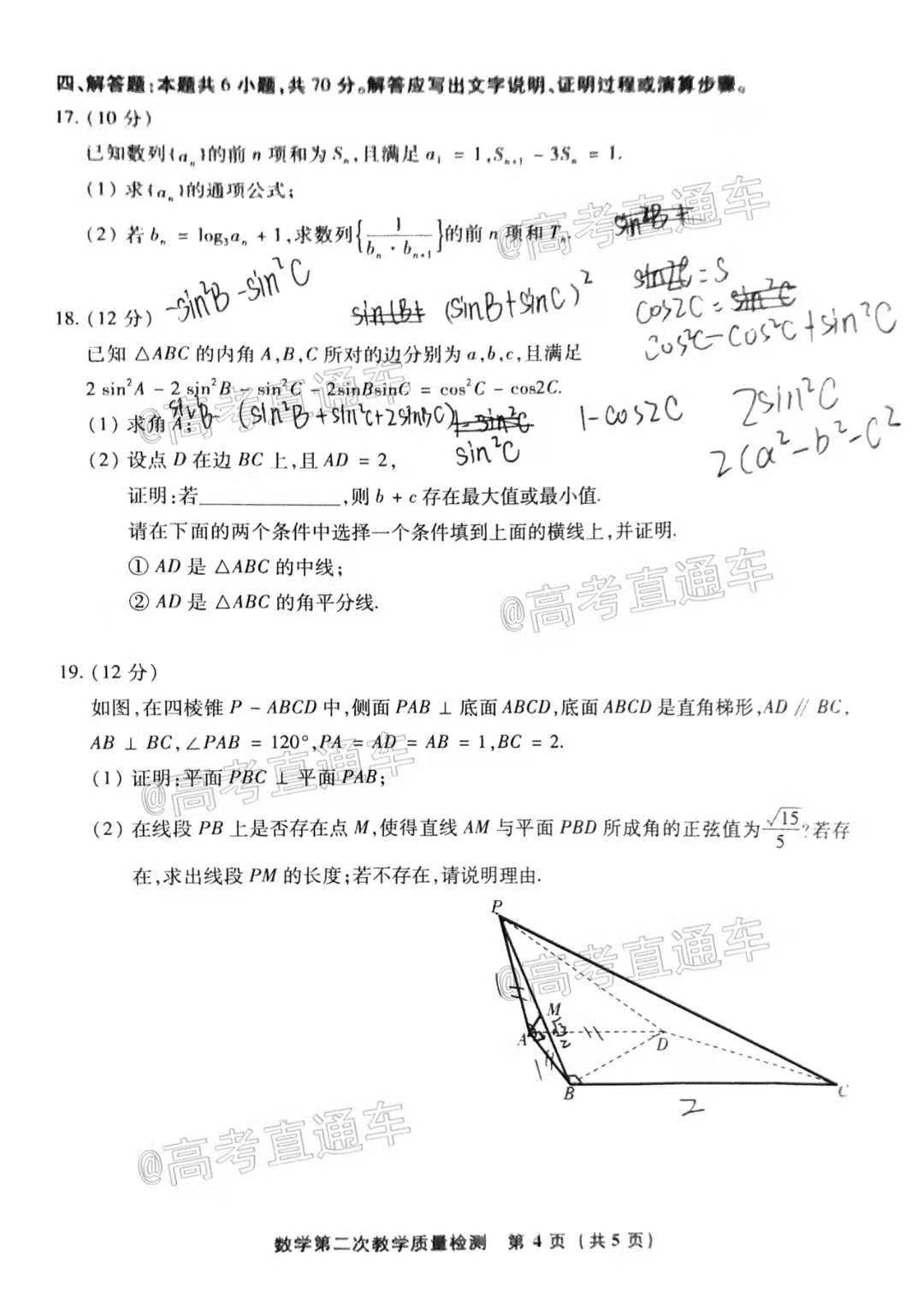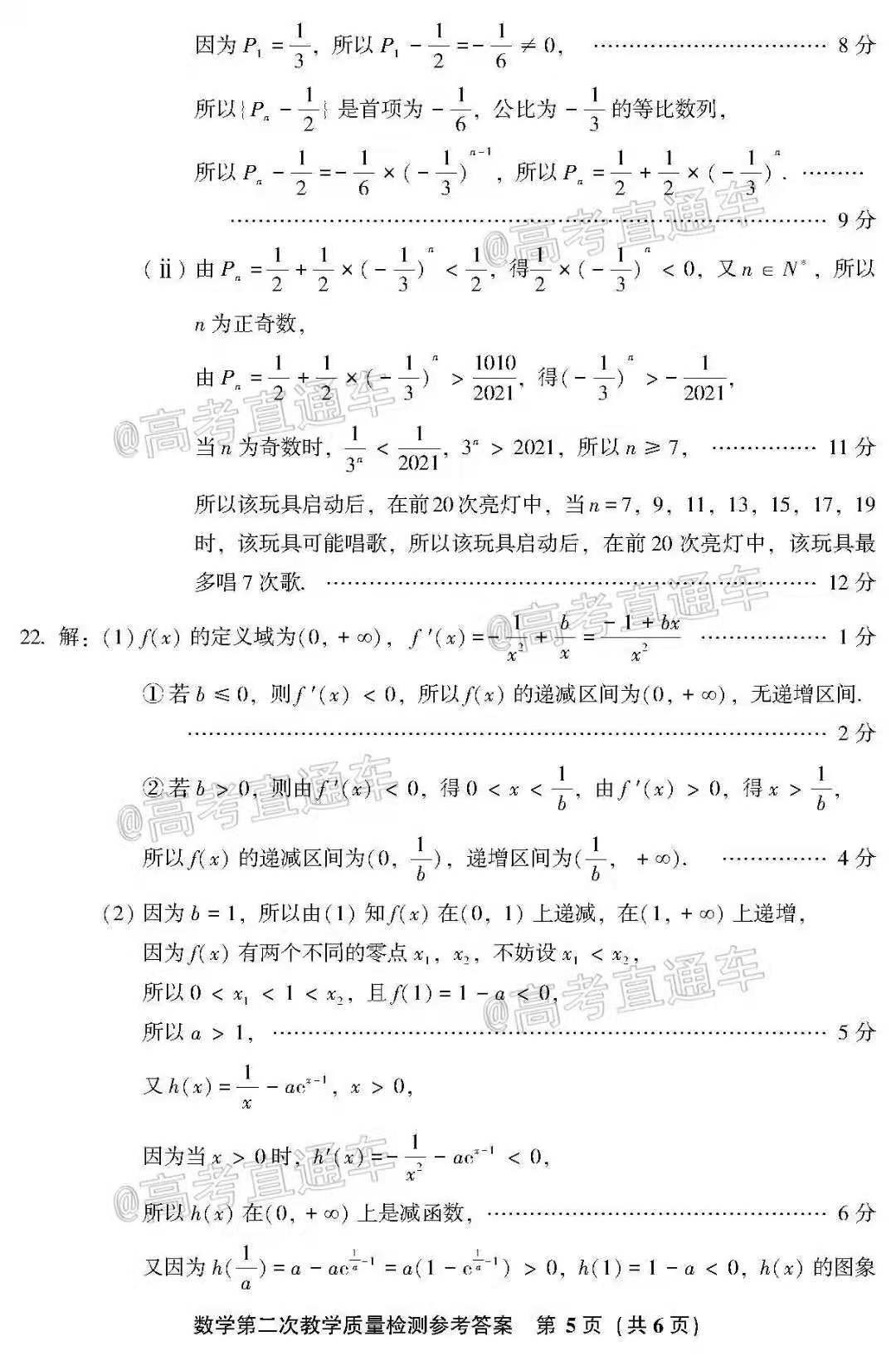 2021年漳州二检数学试卷如下: