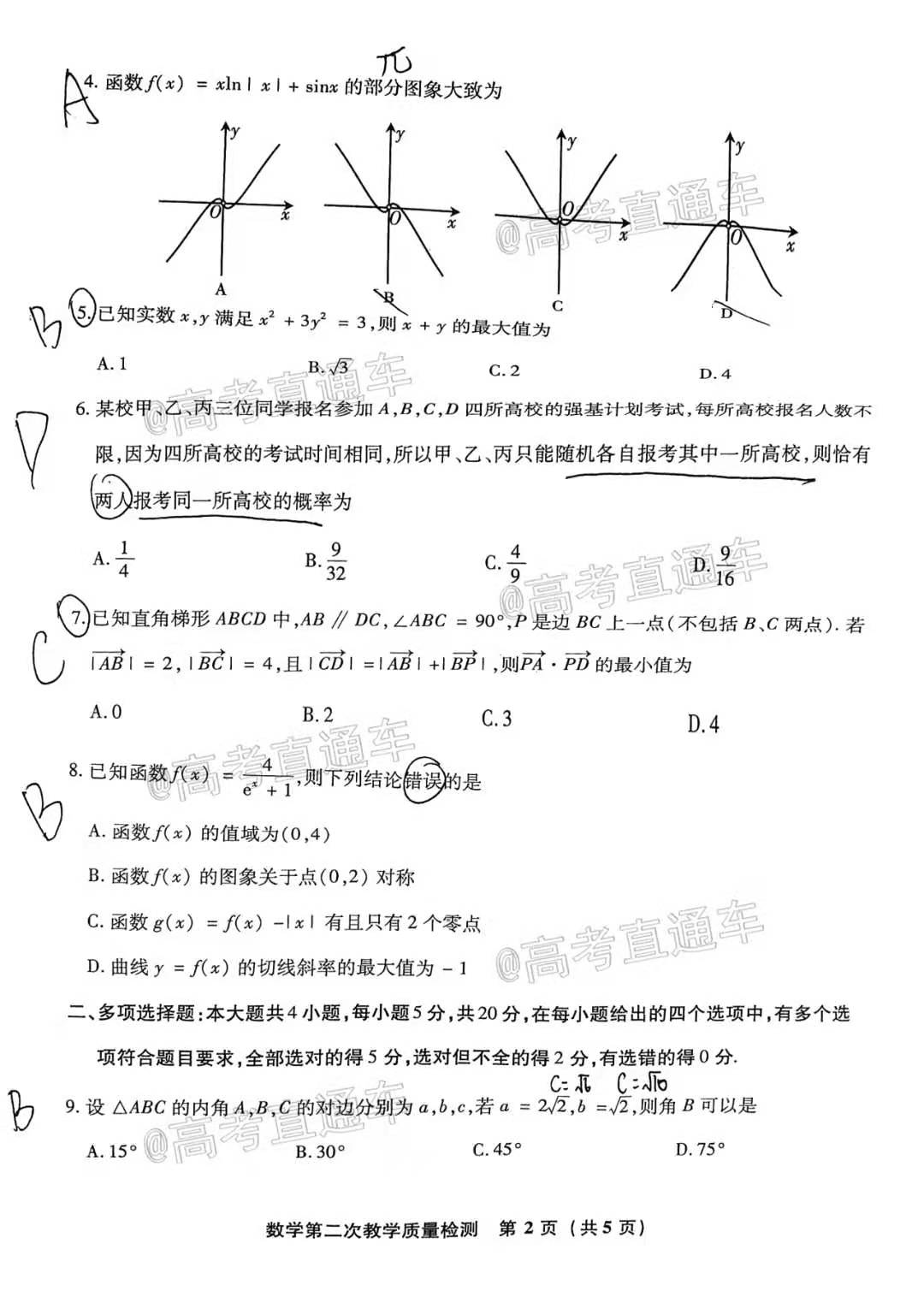 2021年漳州二检数学试卷答案及真题解析如下: