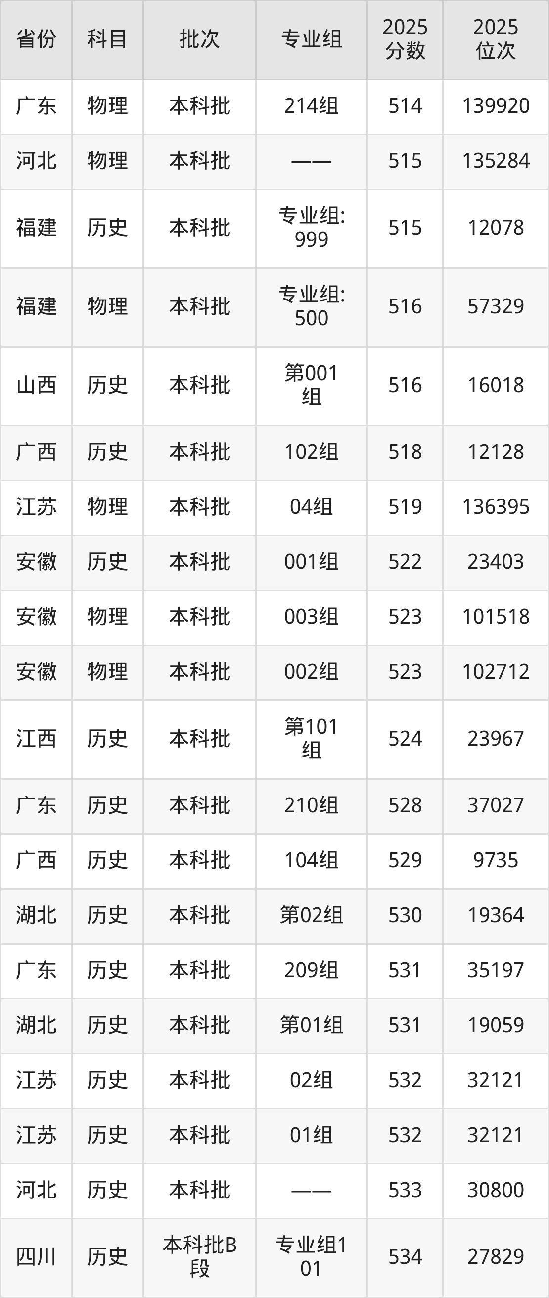 最高录取分数线是523分,对应位次是101518名,招生地区为安徽。