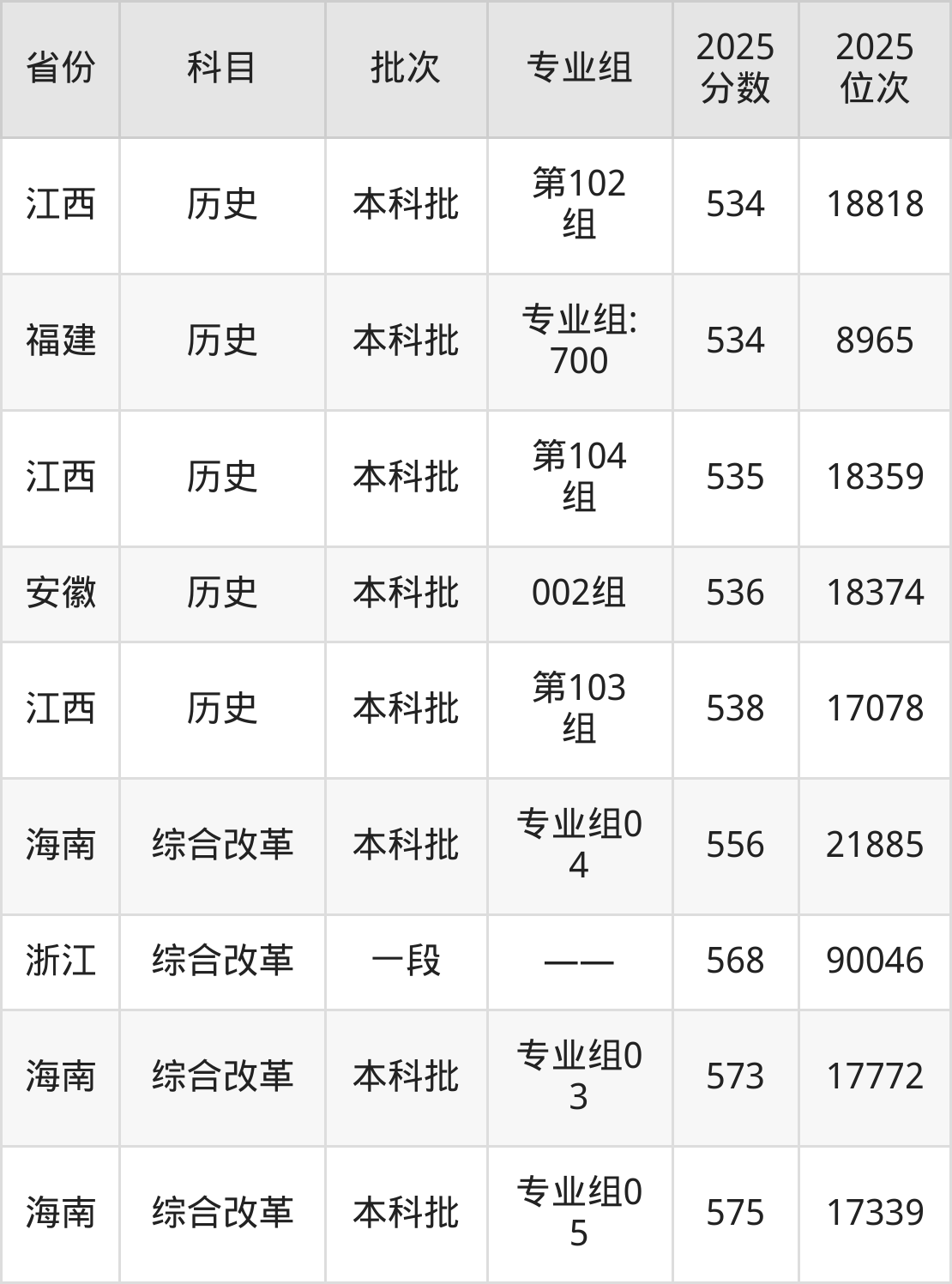 最高录取分数线是538分,对应位次是17078名,招生地区为江西。