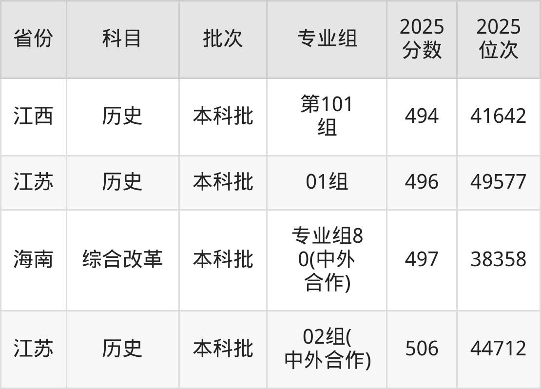 最高录取分数线是506分,对应位次是44712名,招生地区为江苏。