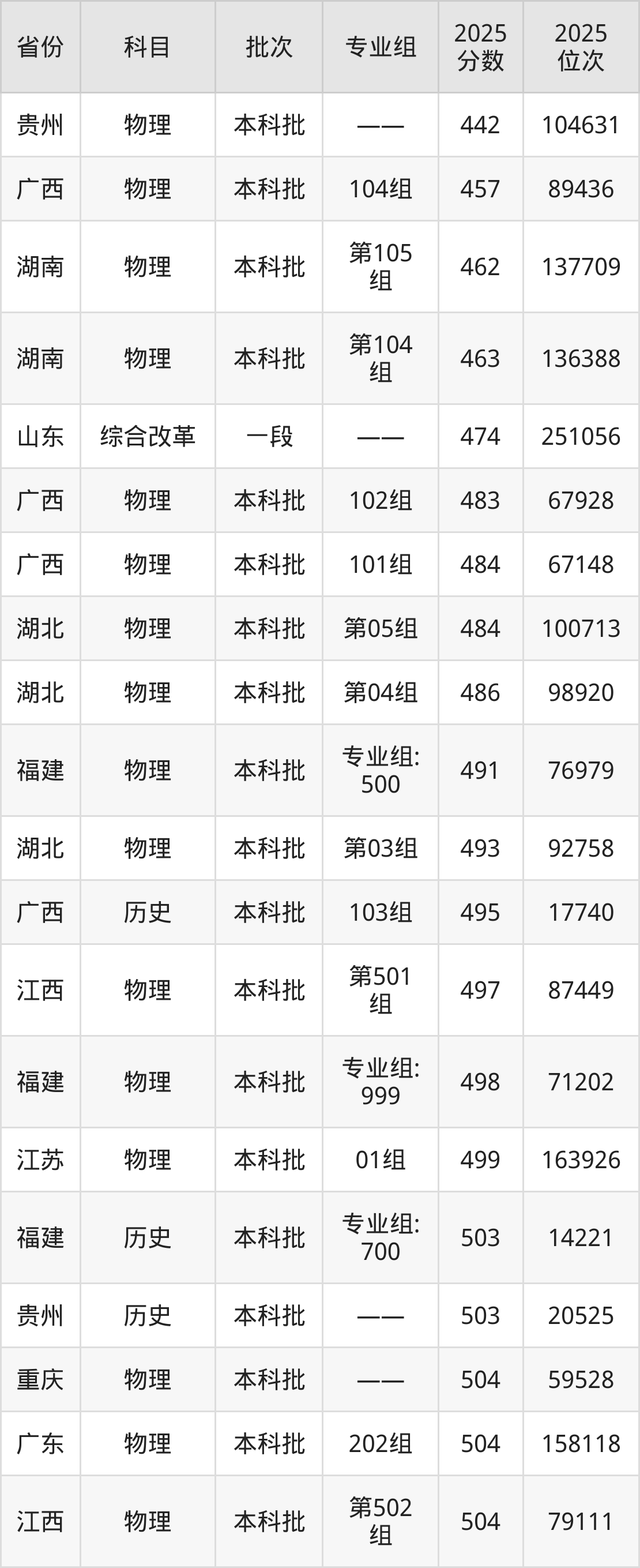 最低录取分数线是495分,对应位次是17740名,招生地区为广西;