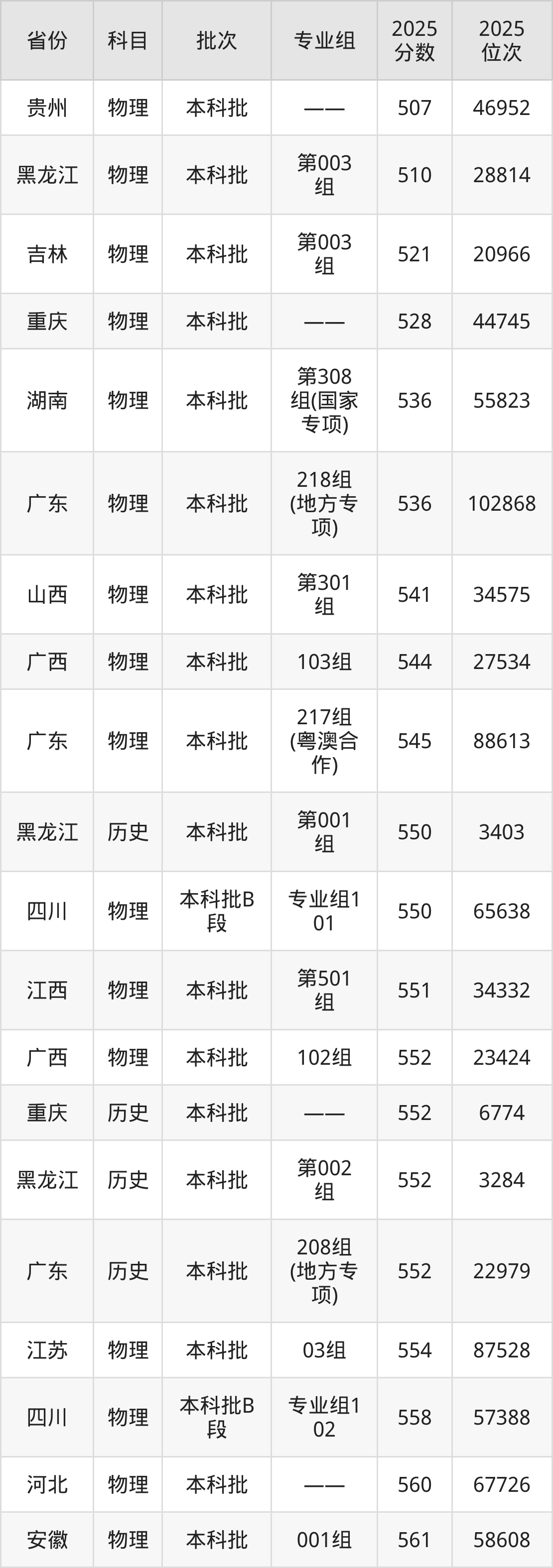 最低录取分数线是550分,对应位次是3403名,招生地区为黑龙江;