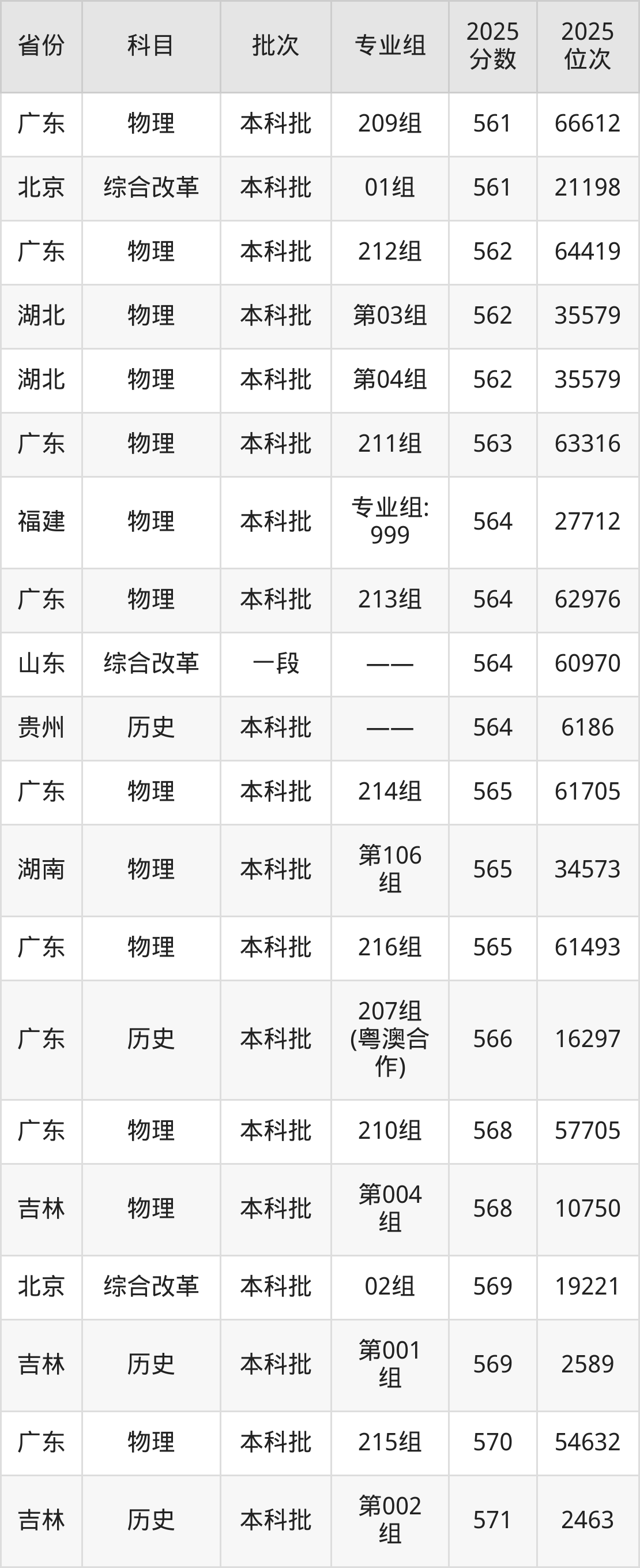 最高录取分数线是570分,对应位次是54632名,招生地区为广东。