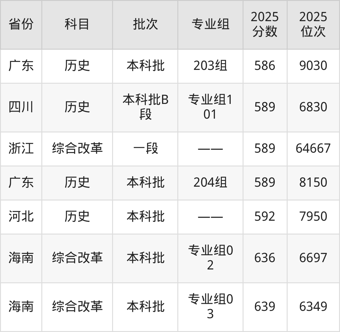 最高录取分数线是592分,对应位次是7950名,招生地区为河北。