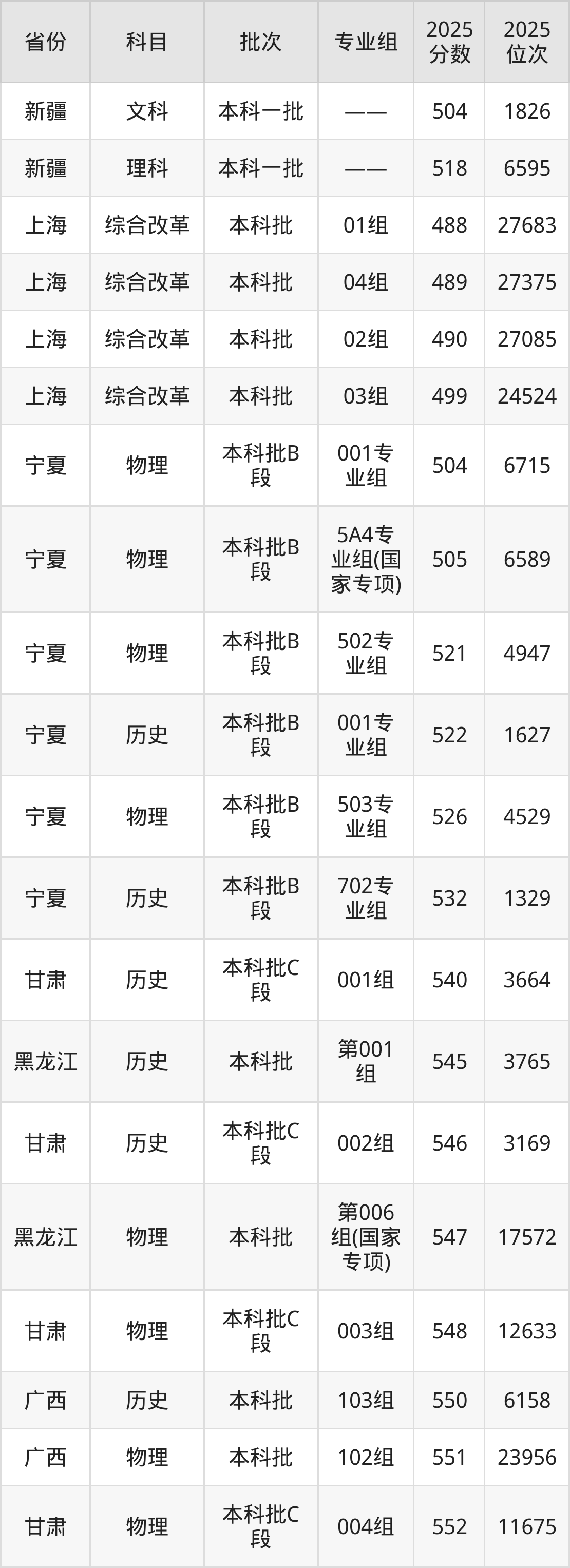 最低录取分数线是504分,对应位次是6715名,招生地区为宁夏;
