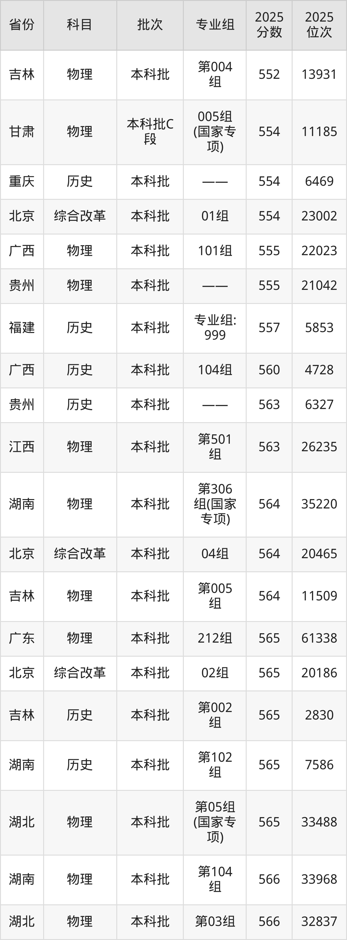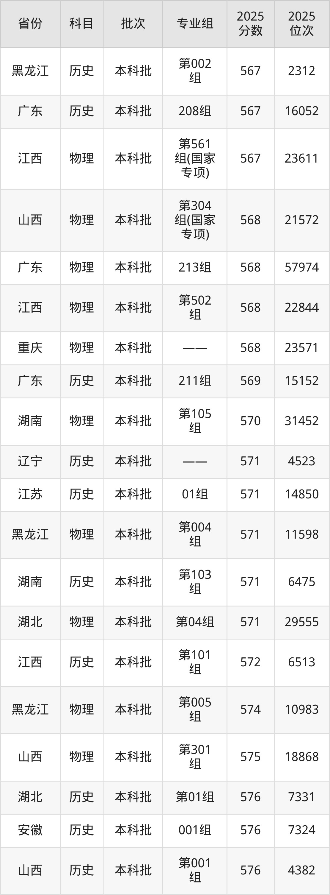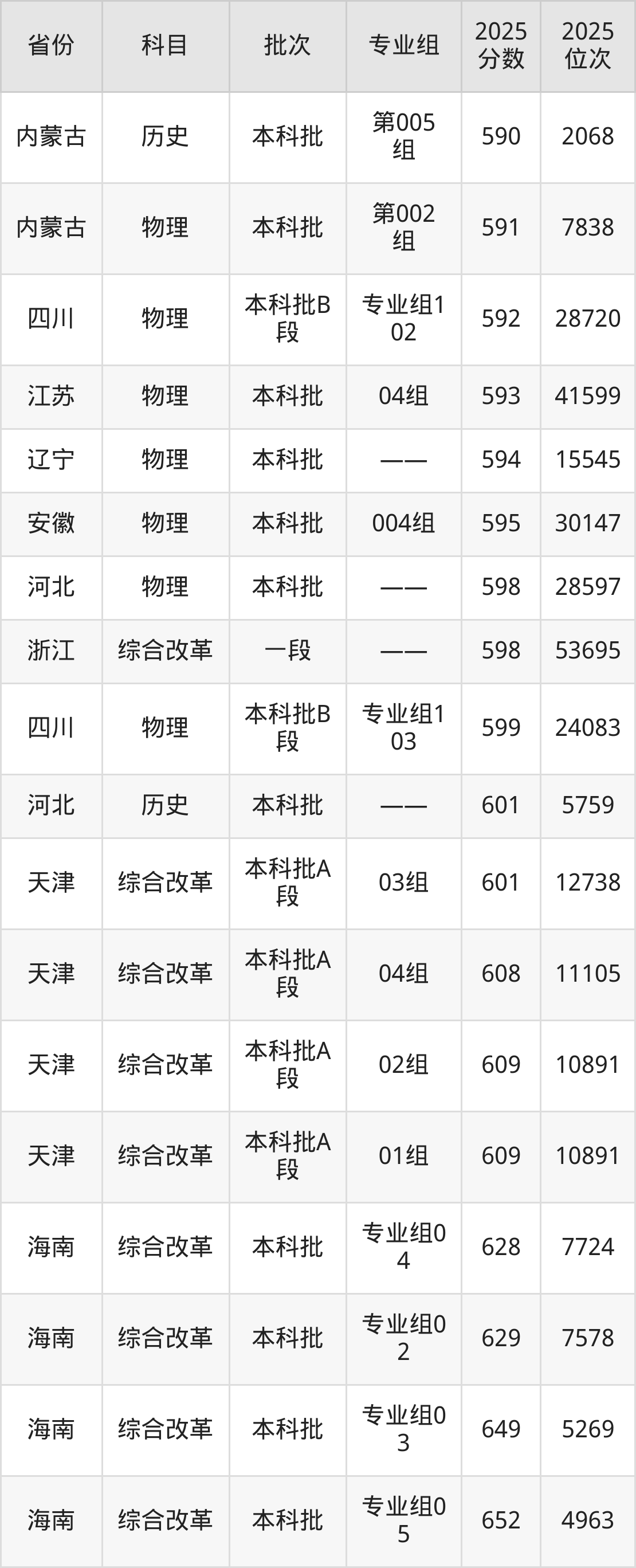 2025年中国民航大学在各省普通批录取分数线一览表: