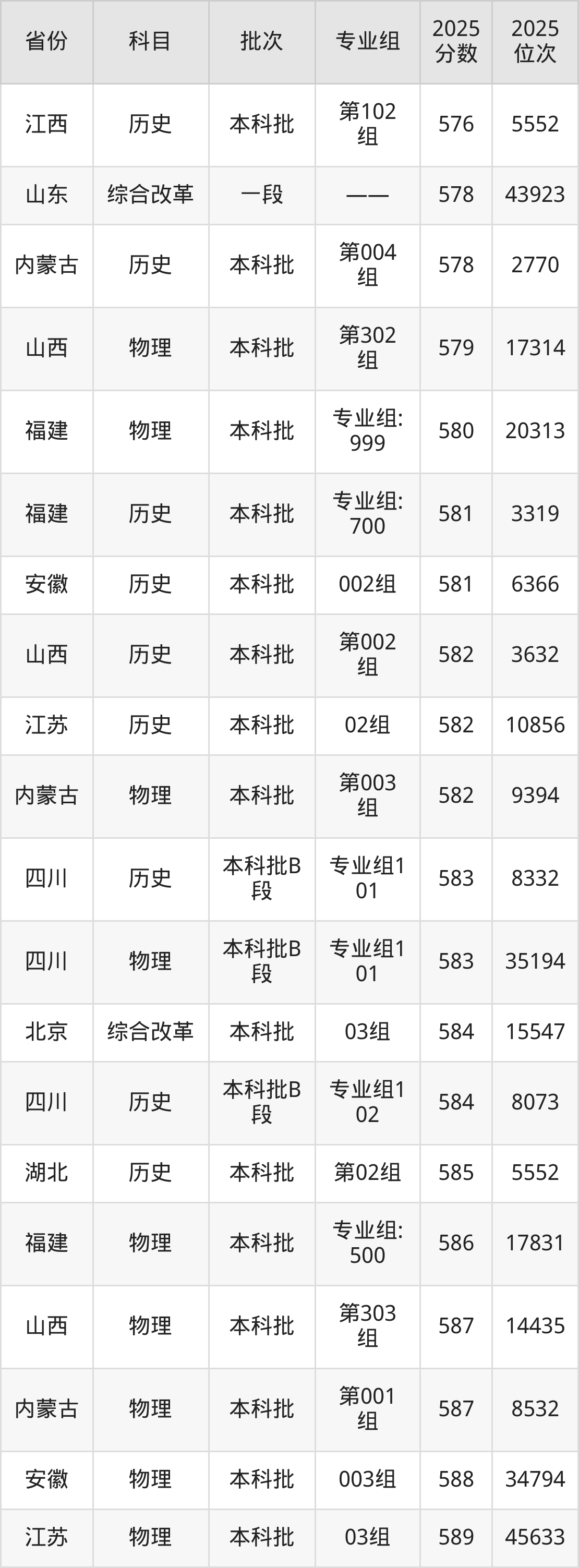 最高录取分数线是599分,对应位次是24083名,招生地区为四川。