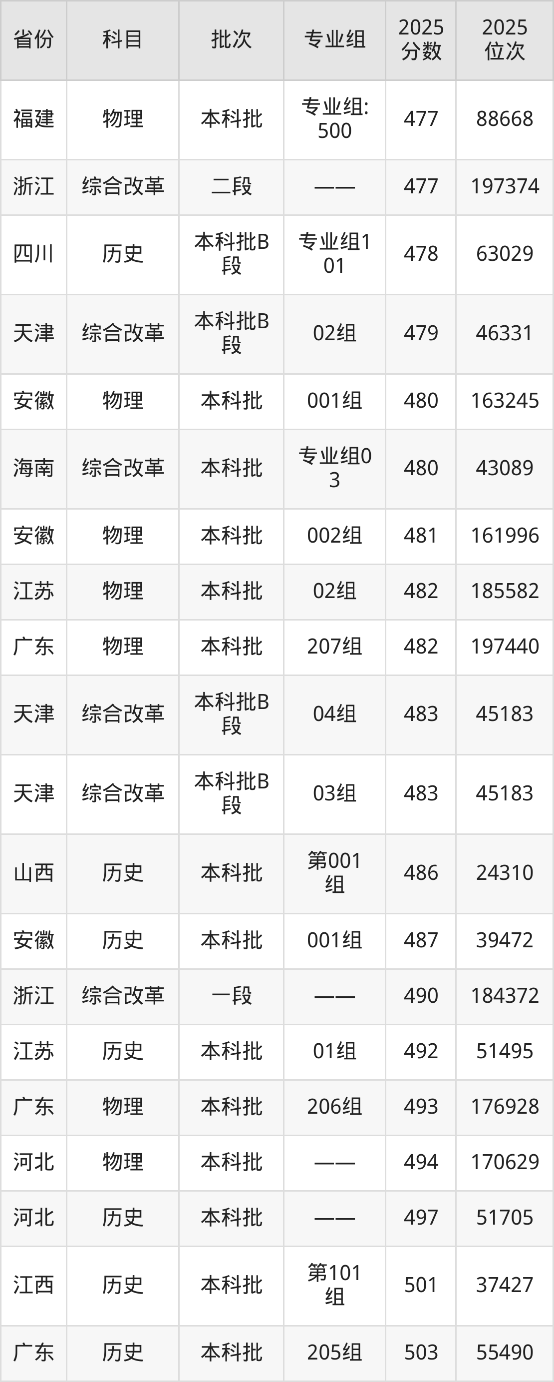最高录取分数线是503分,对应位次是55490名,招生地区为广东。