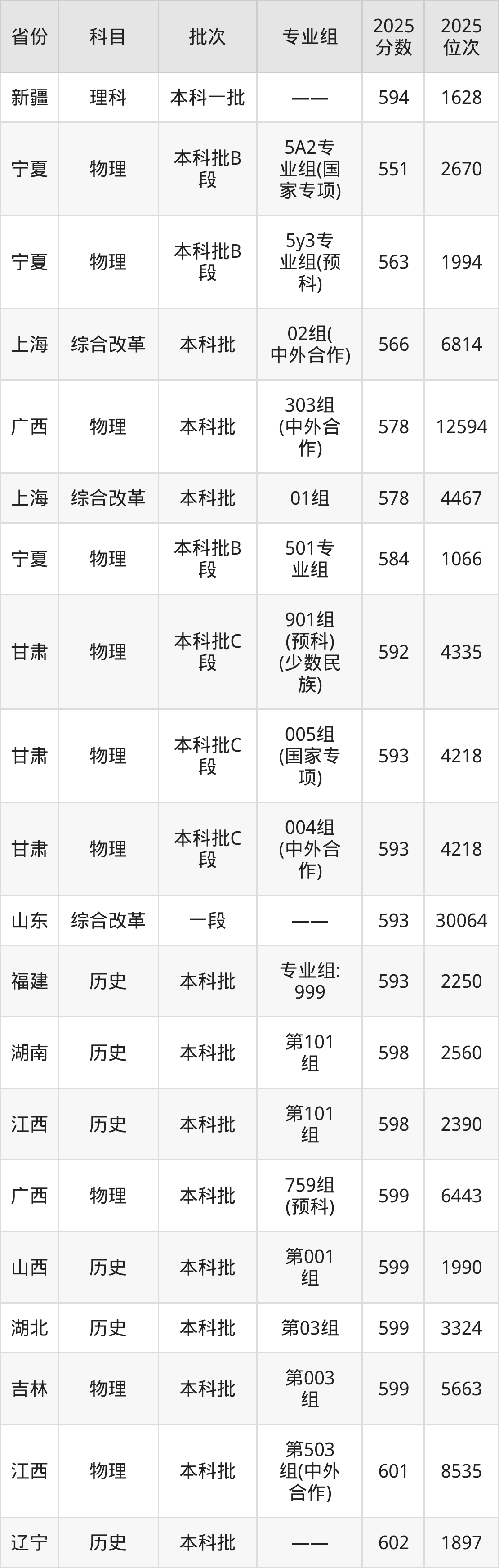 最低录取分数线是593分,对应位次是2250名,招生地区为福建;