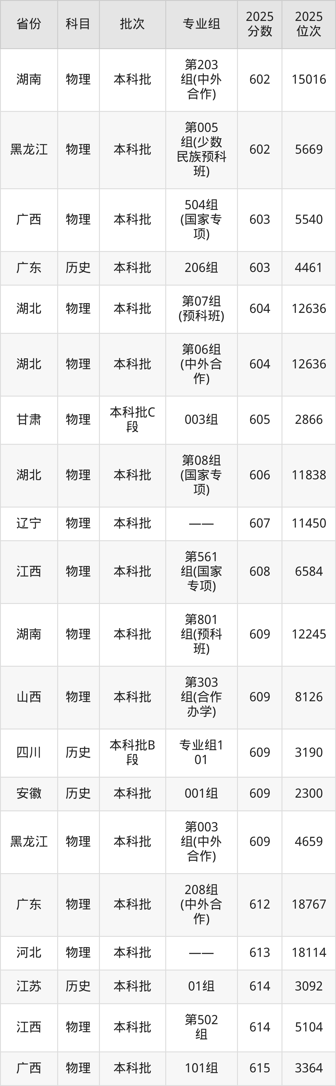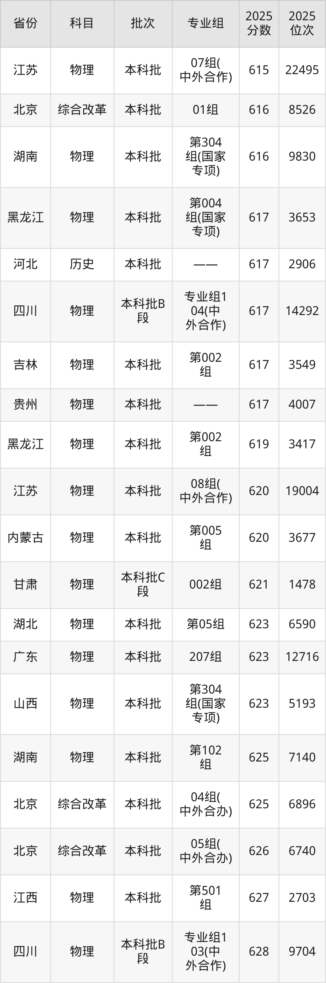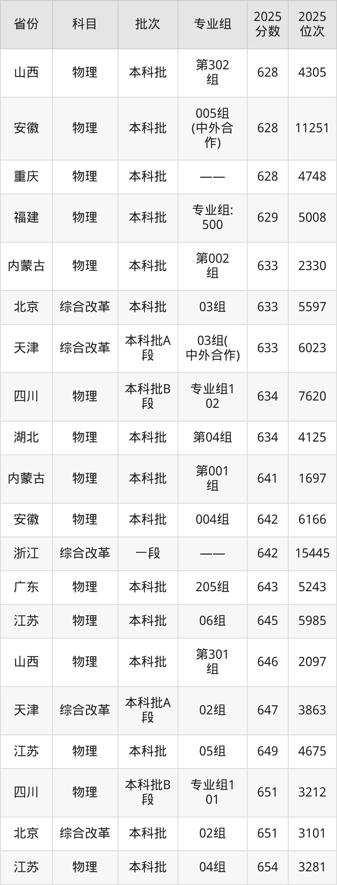 2025年南京航空航天大学在各省普通批录取分数线一览表: