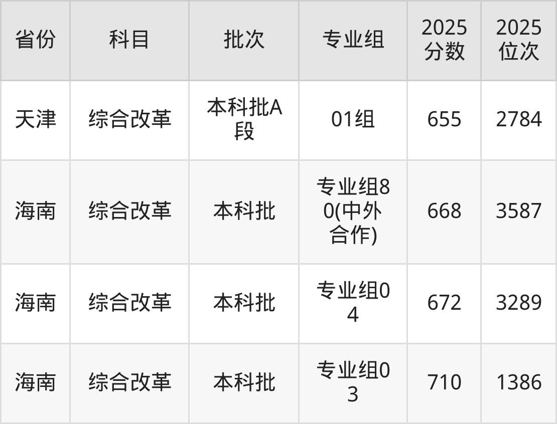 最高录取分数线是710分,对应位次是1386名,招生地区为海南。