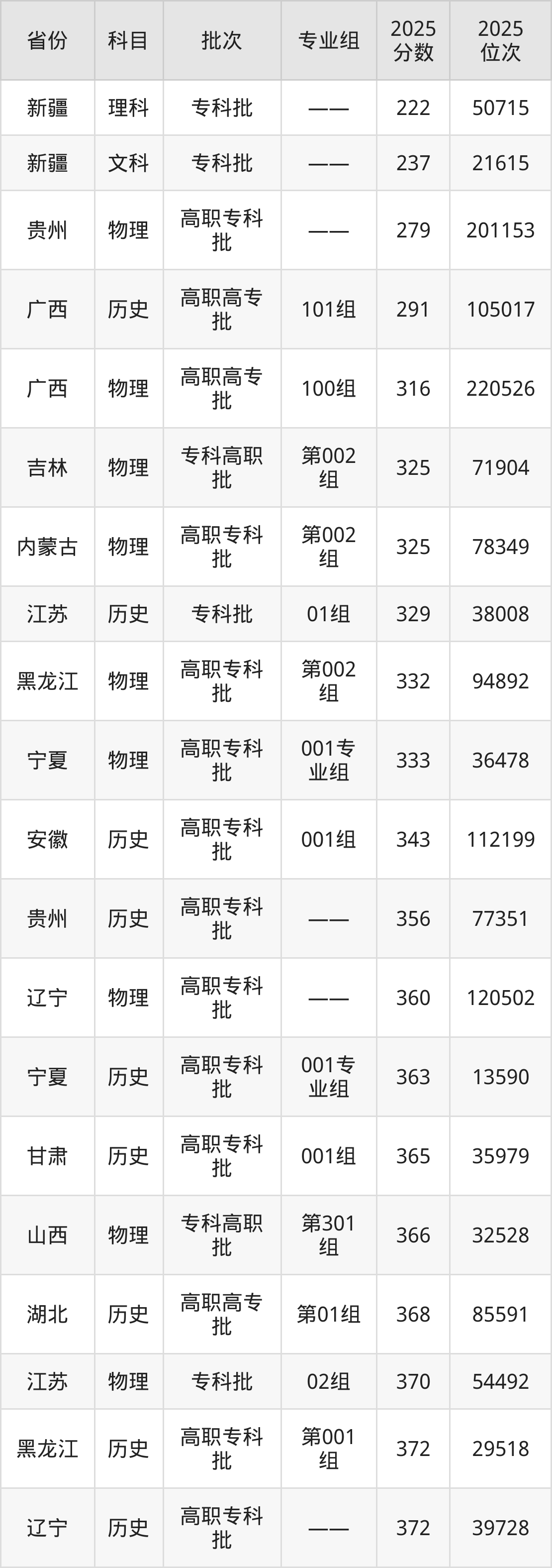 最低录取分数线是222分,对应位次是50715名,招生地区为新疆;