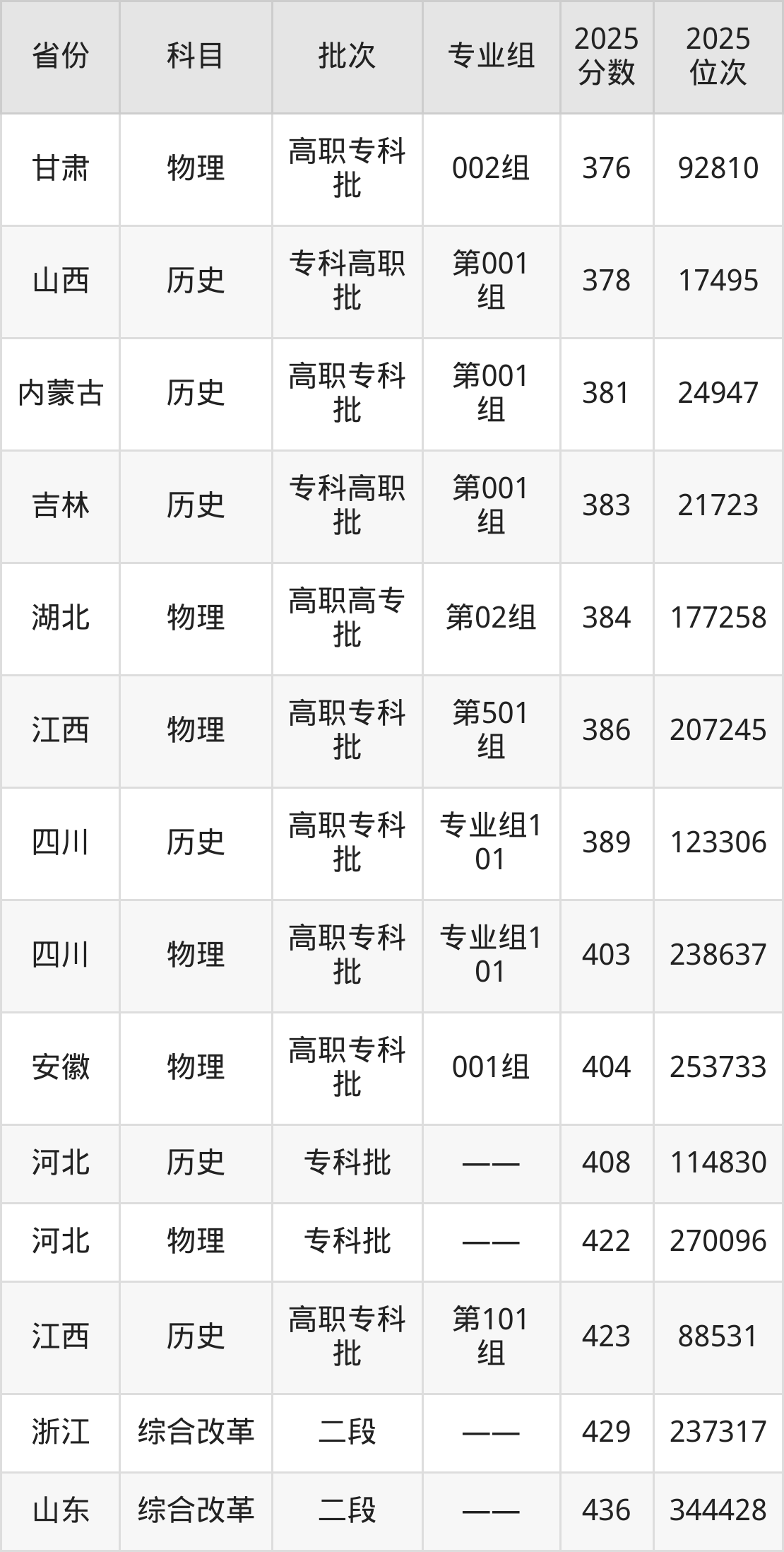 最低录取分数线是429分,对应位次是237317名,招生地区为浙江;