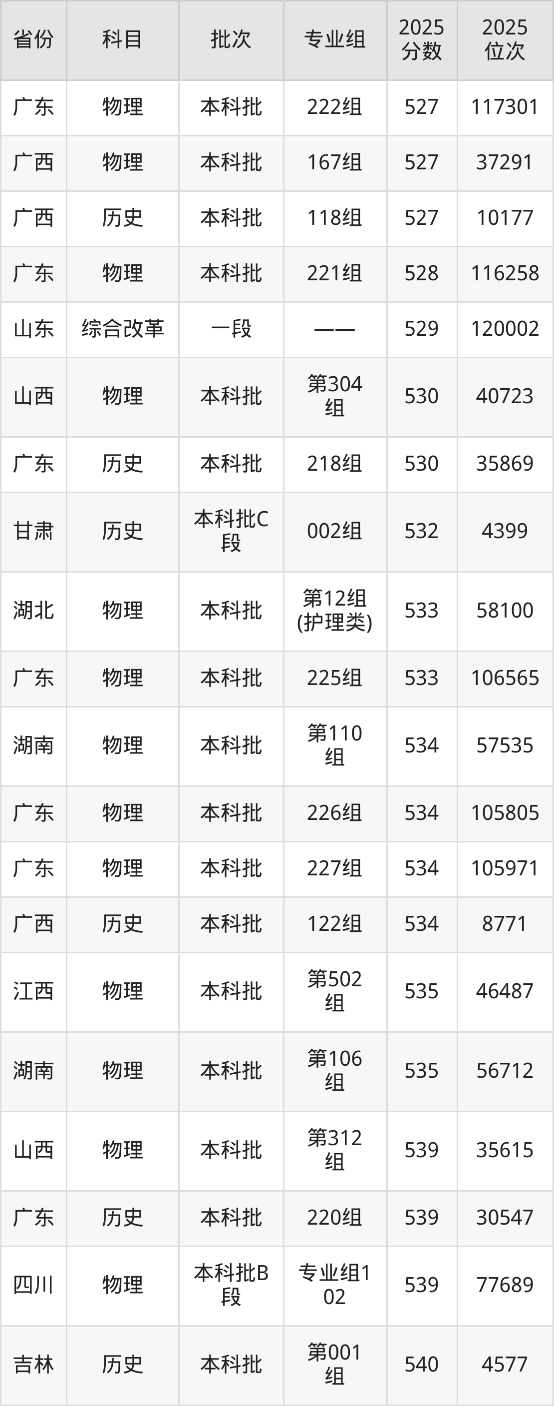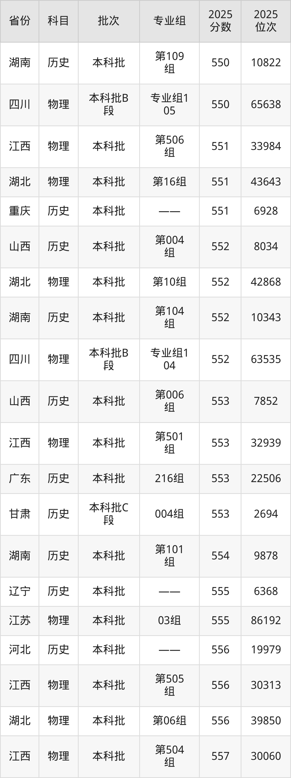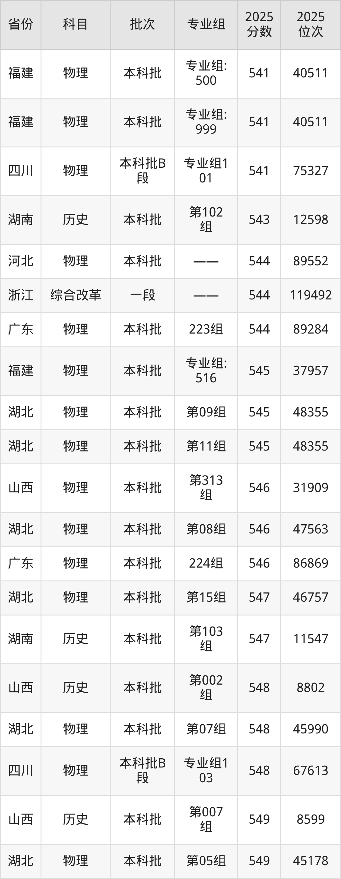 2025年西藏大学在各省普通批录取分数线一览表: