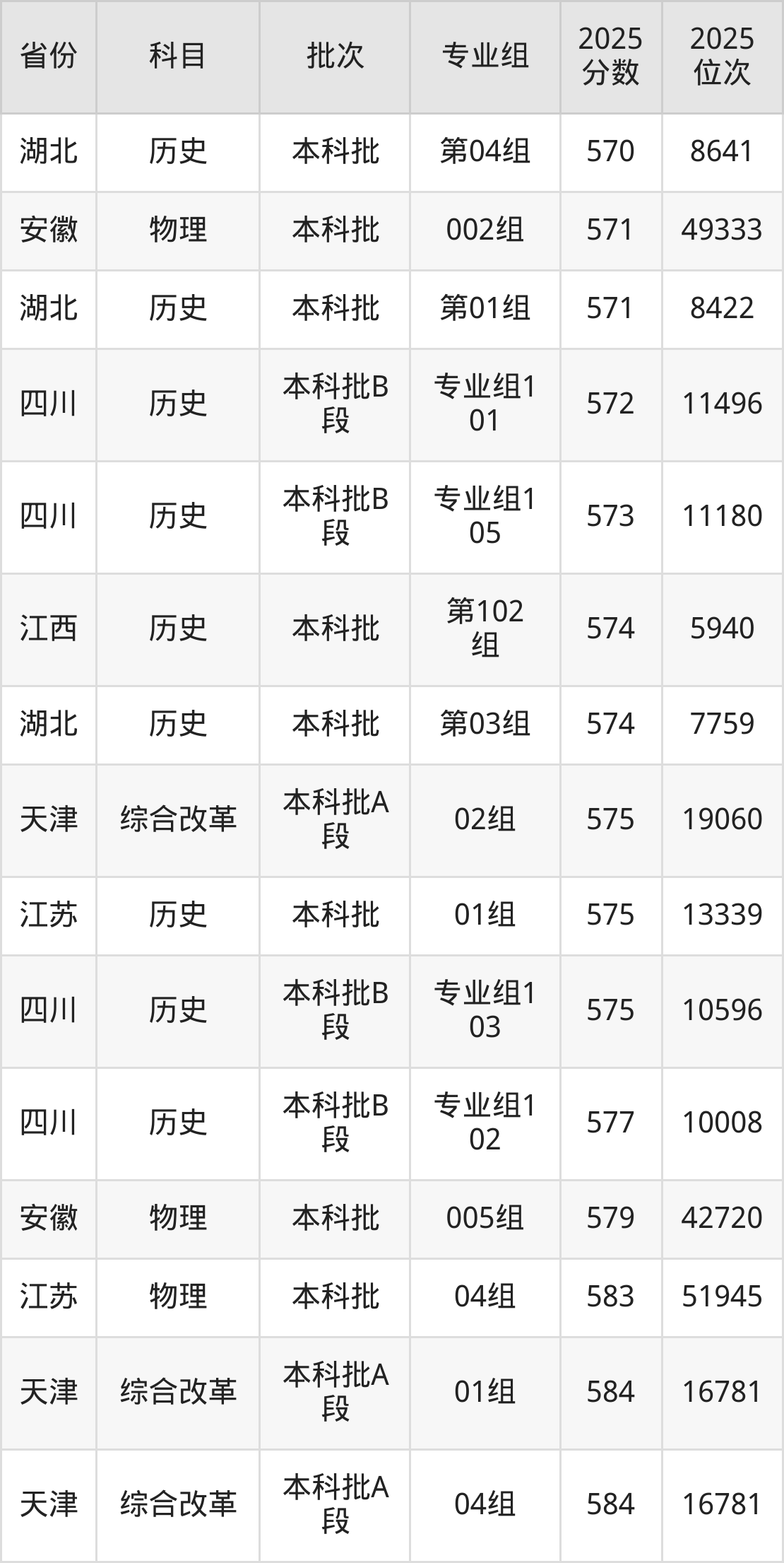 最高录取分数线是577分,对应位次是10008名,招生地区为四川。